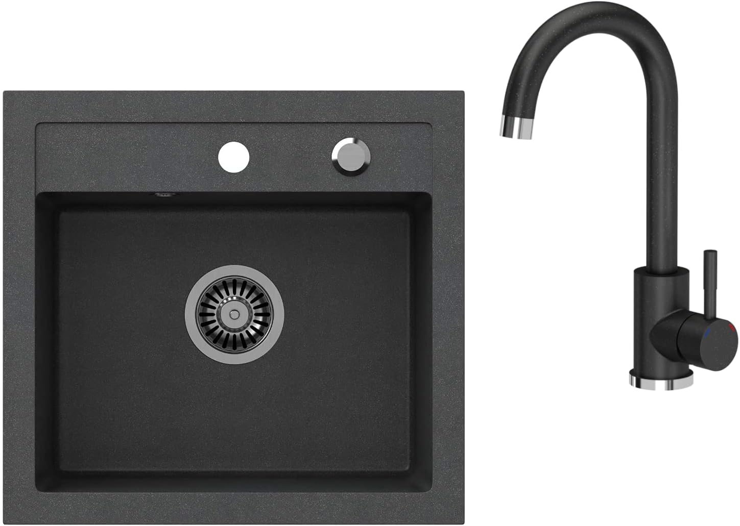 - ✅ Moderne massive Granitspüle aus 80% Granitzuschlagstoff 20% Harz mit rundem Korbventil zum automatischen Öffnen und Schliessen des Ablaufes. Extrem hartes, kratzfestes und durchgefärbtes Material - Oberfläche lässt sich leicht durch eine glatte,