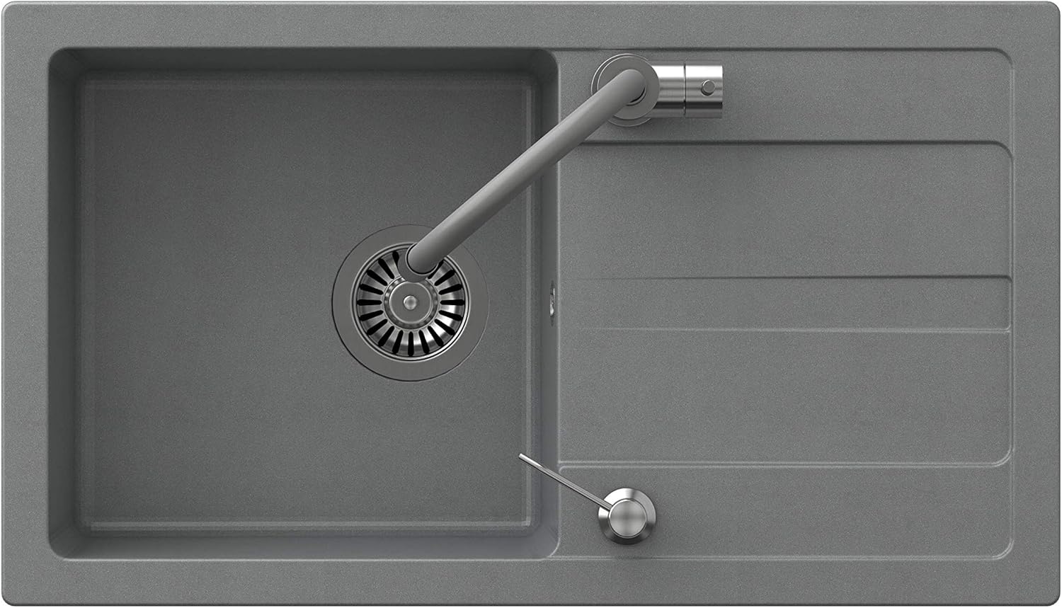 - Moderne massive Granitspüle aus 80% Granitzuschlagstoff 20% Harz. Extrem hartes, kratzfestes und durchgefärbtes Material - Oberfläche lässt sich leicht durch eine glatte, versiegelte Oberfläche reinigen.