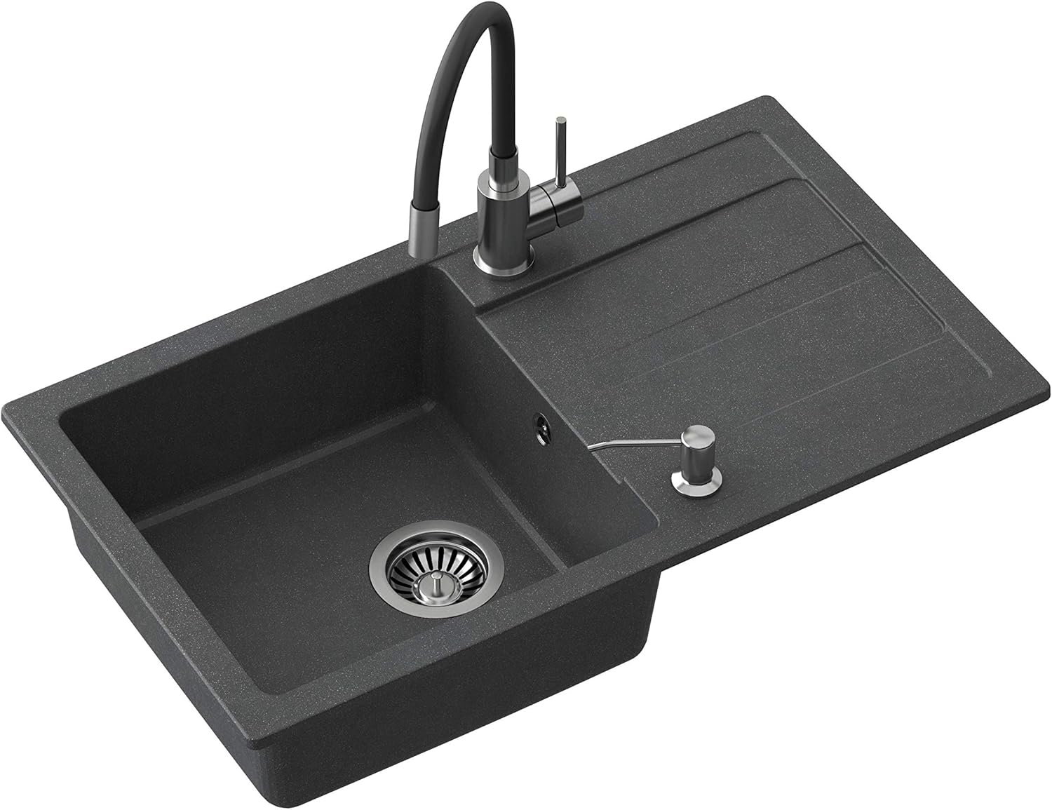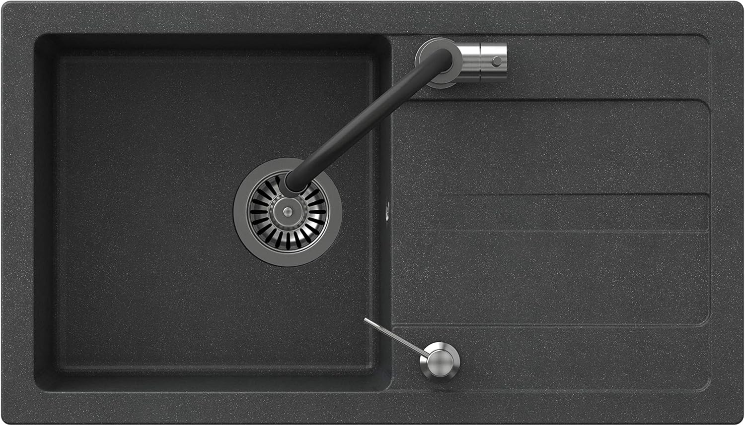 - Moderne massive Granitspüle aus 80% Granitzuschlagstoff 20% Harz. Extrem hartes, kratzfestes und durchgefärbtes Material - Oberfläche lässt sich leicht durch eine glatte, versiegelte Oberfläche reinigen.
