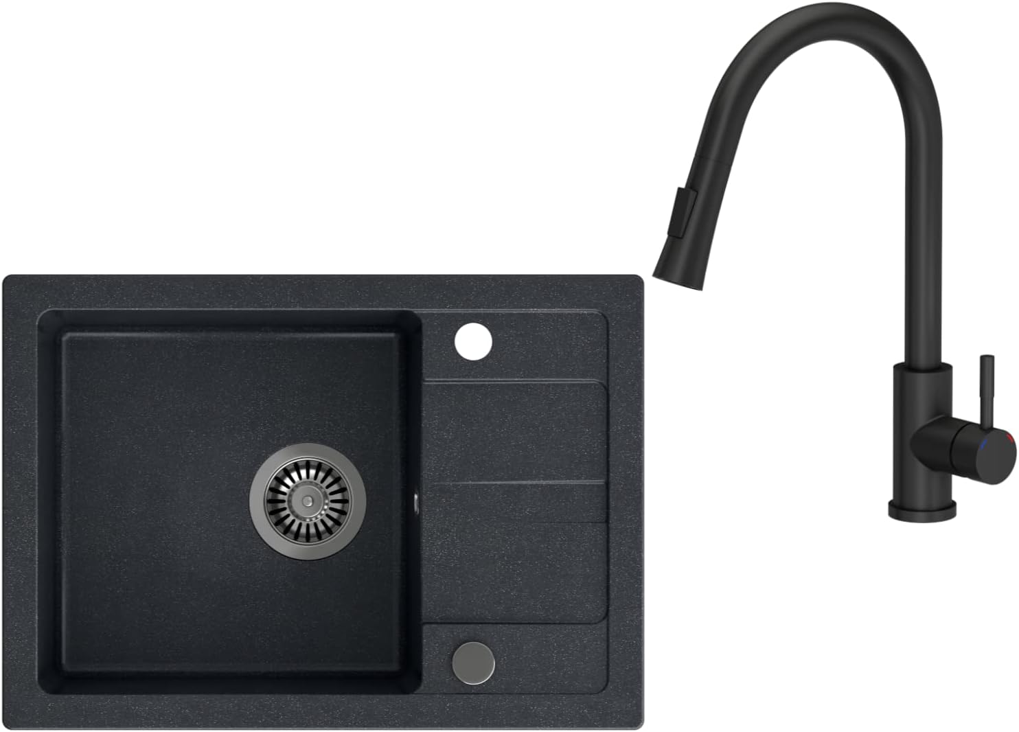 VBChome Spülbecken mit Armatur Schwarz 62 x 44 cm Granit Einzelbecken Einbauspüle Abtroffläche Gespr
