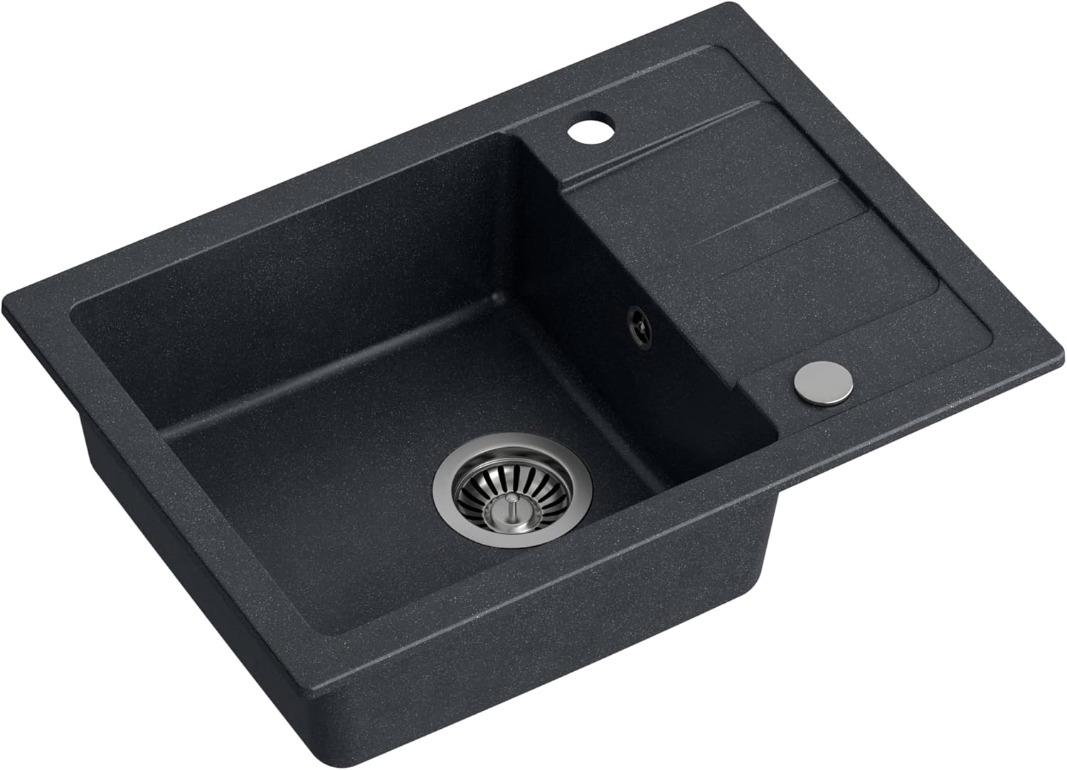 • Mit praktischer Abtropffläche zum Abstellen von Geschirr. Mit Anschluss für eine Waschmaschine oder Geschirrspüler.Die Granit-Küchenspüle ist für den flächenbündigen Einbau konzipiert. Das Waschbecken ist reversibel (links oder rechts) einbaubar.