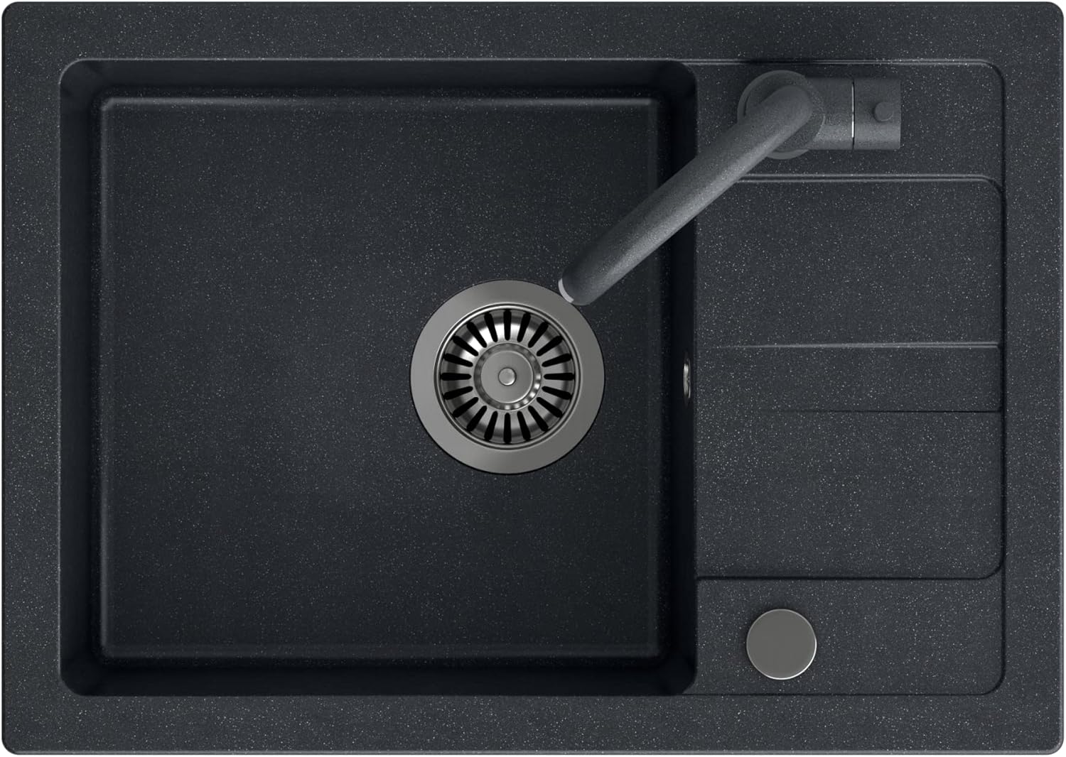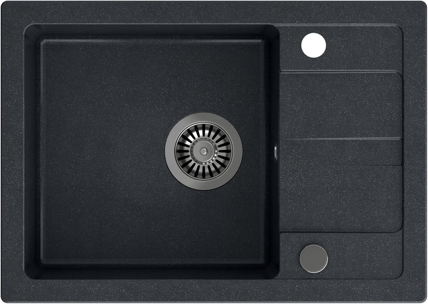 - Moderne massive Granitspüle aus 80% Granitzuschlagstoff 20% Harz mit rundem Korbventil zum automatischen Öffnen und Schliessen des Ablaufes. Extrem hartes, kratzfestes und durchgefärbtes Material - Oberfläche lässt sich leicht durch eine glatte,
