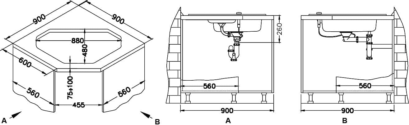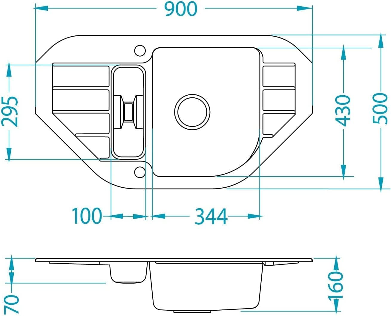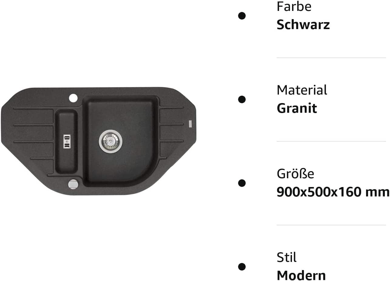 - ✅ Mit Anschluss für eine Waschmaschine oder Geschirrspüler.Die Granit-Küchenspüle ist für den flächenbündigen Einbau konzipiert. Für Unterschränke ab 60 cm geeignet. Gesamtmass: 900x500x160 mm, Beckenmass: 344x430 mm 100x295 mm, Tiefe des