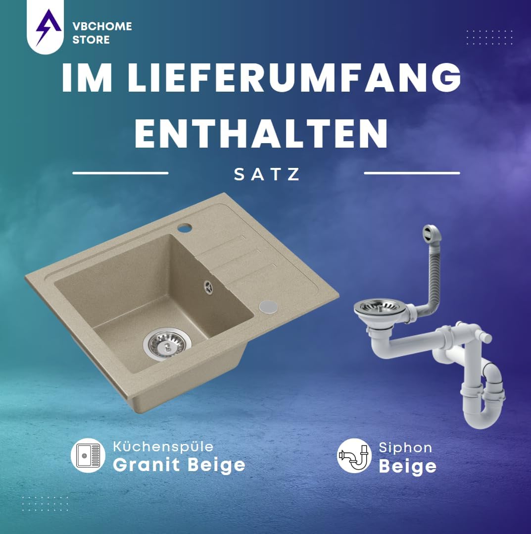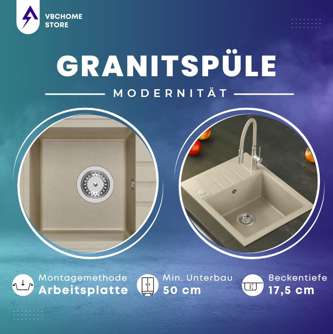 - ⚠ Moderne massive Granitspüle aus 80% Granitzuschlagstoff 20% Harz. Extrem hartes, kratzfestes und durchgefärbtes Material - Oberfläche lässt sich leicht durch eine glatte, versiegelte Oberfläche reinigen.