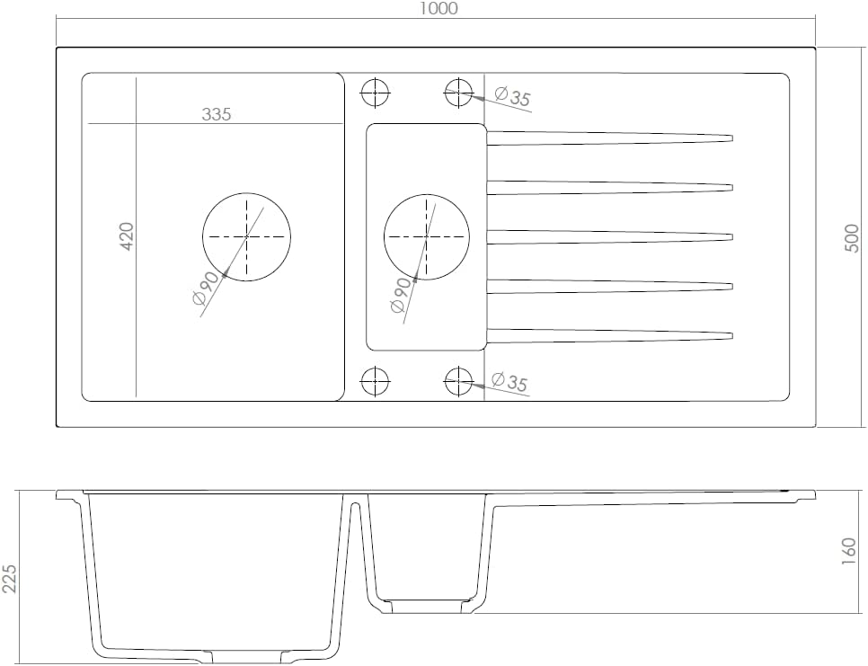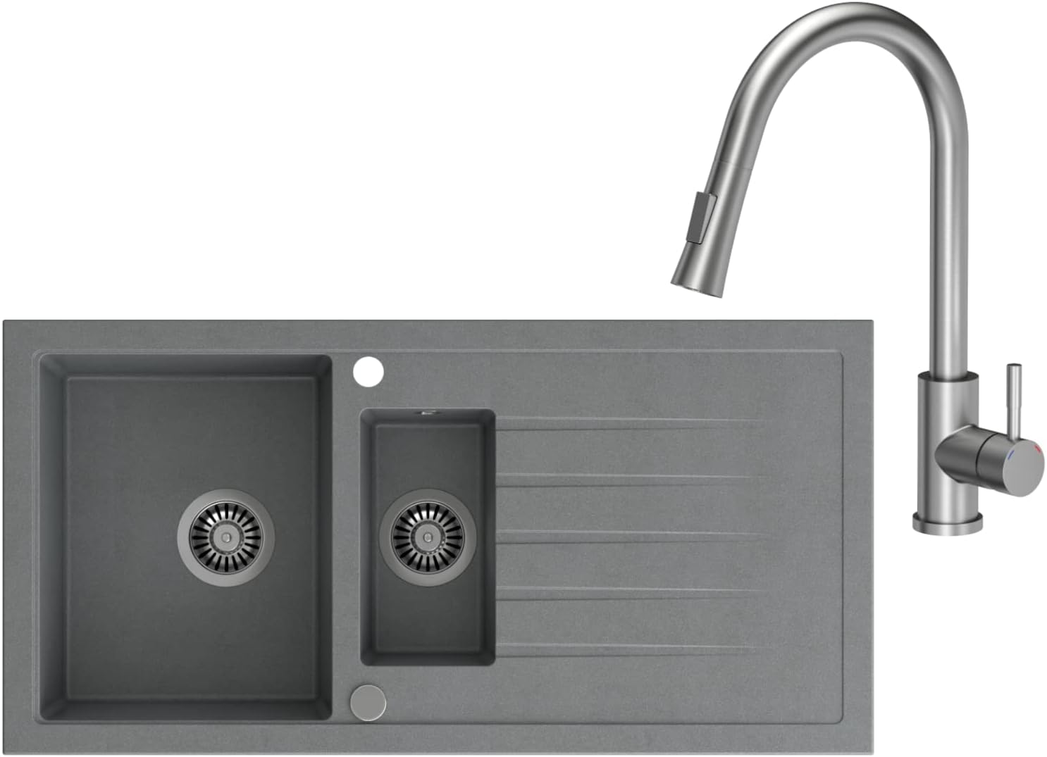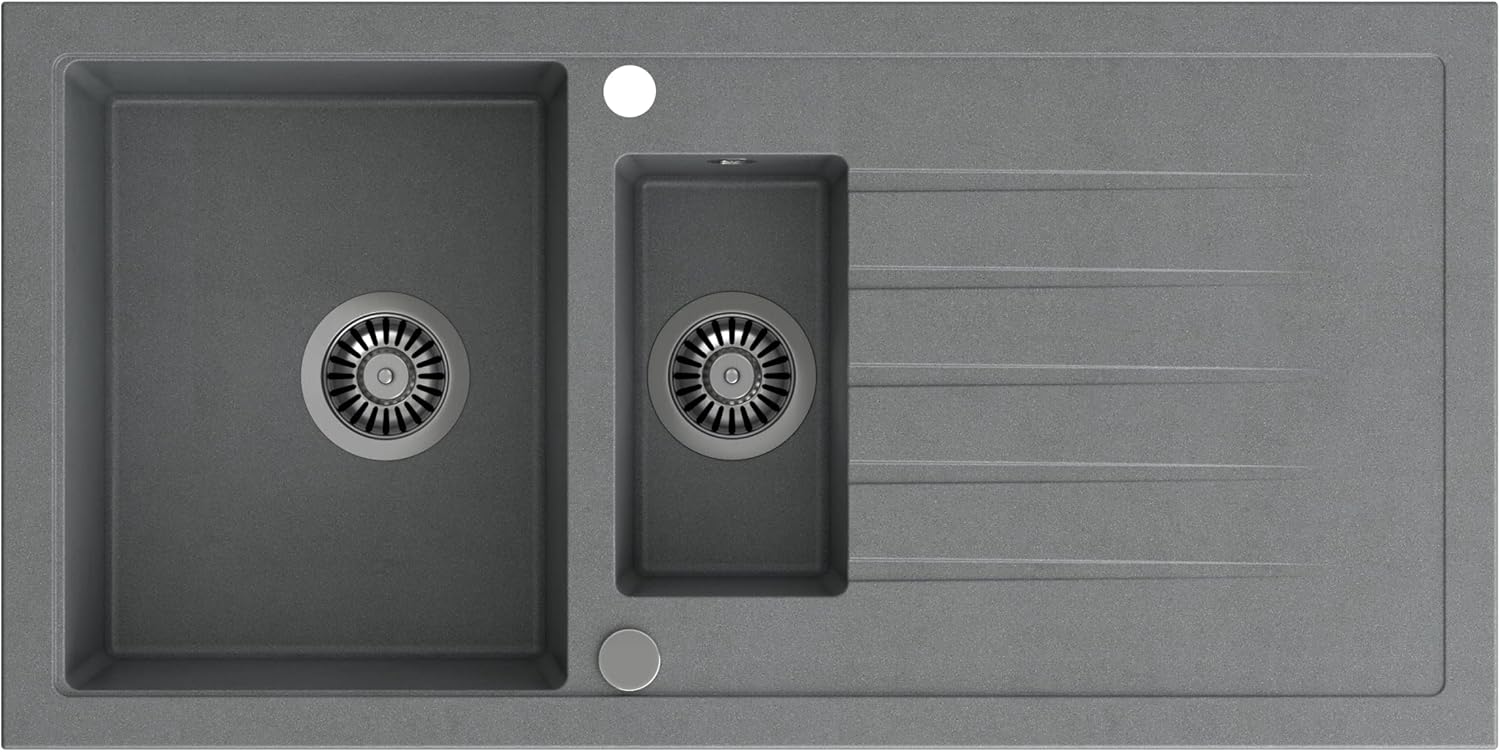 • Wendespüle - Becken kann auf der rechten oder linken Seite montiert werden. Tiefe und geräumige Spülbecken sind ihr Unterscheidungsmerkmal, das einen hohen Nutzungskomfort gewährleistet. || Das Angebot: Granitspülen + Armatur + Siphon