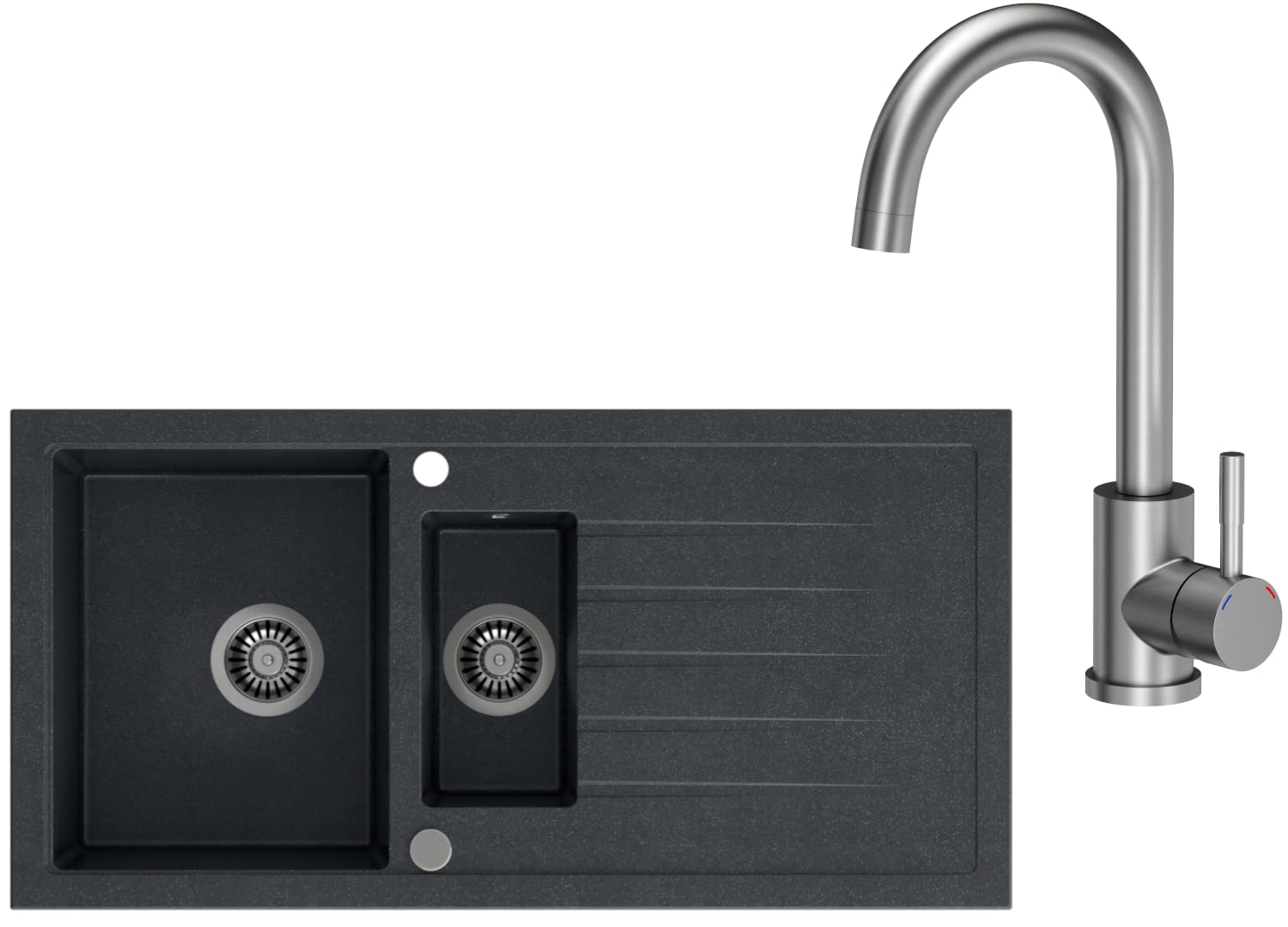 - Wendespüle - Becken kann auf der rechten oder linken Seite montiert werden. Tiefe und geräumige Spülbecken sind ihr Unterscheidungsmerkmal, das einen hohen Nutzungskomfort gewährleistet. || Das Angebot: Granitspülen + Armatur + Siphon