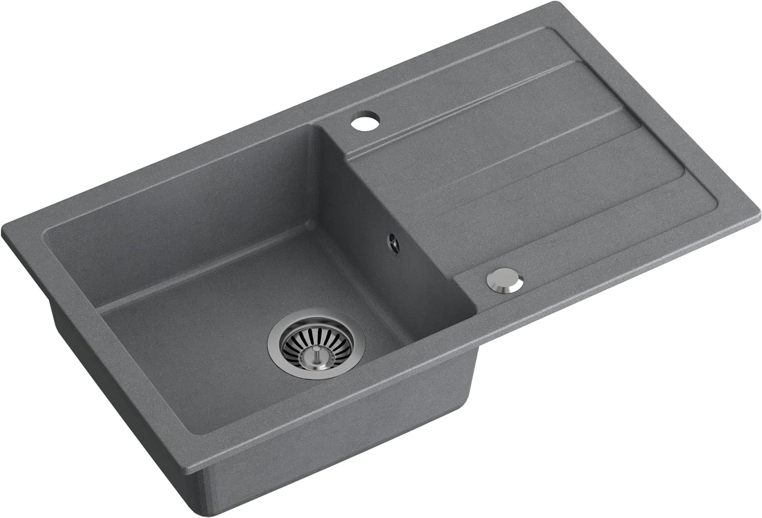 - Moderne massive Granitspüle aus 80% Granitzuschlagstoff 20% Harz mit rundem Korbventil zum automatischen Öffnen und Schliessen des Ablaufes. Extrem hartes, kratzfestes und durchgefärbtes Material - Oberfläche lässt sich leicht durch eine glatte,