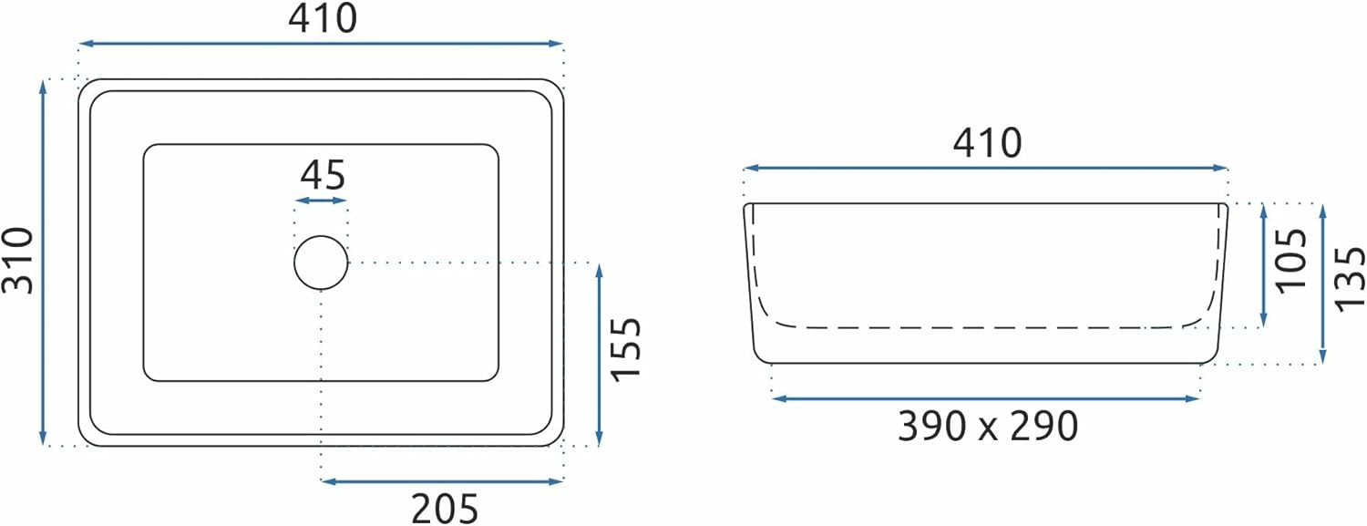 • ✅ Masse ca. 41cm x 31cm x 13,5cm (siehe Bild). Dank des zeitlosen Designs passt dies weisse und glänzende Waschbecken perfekt an allen gängigen Unterschränke, ein wahrer Hingucker in Ihrem Badezimmer. Das Waschbecken beinhaltet kein