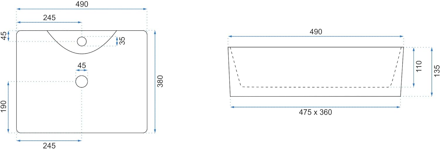 • ✅ Masse ca. 49cm x 38cm x 13,5cm (siehe Bild). Dank des zeitlosen Designs passt dies weisse und glänzende Waschbecken perfekt an allen gängigen Unterschränke, ein wahrer Hingucker in Ihrem Badezimmer. Das Waschbecken beinhaltet kein Hahnloch.