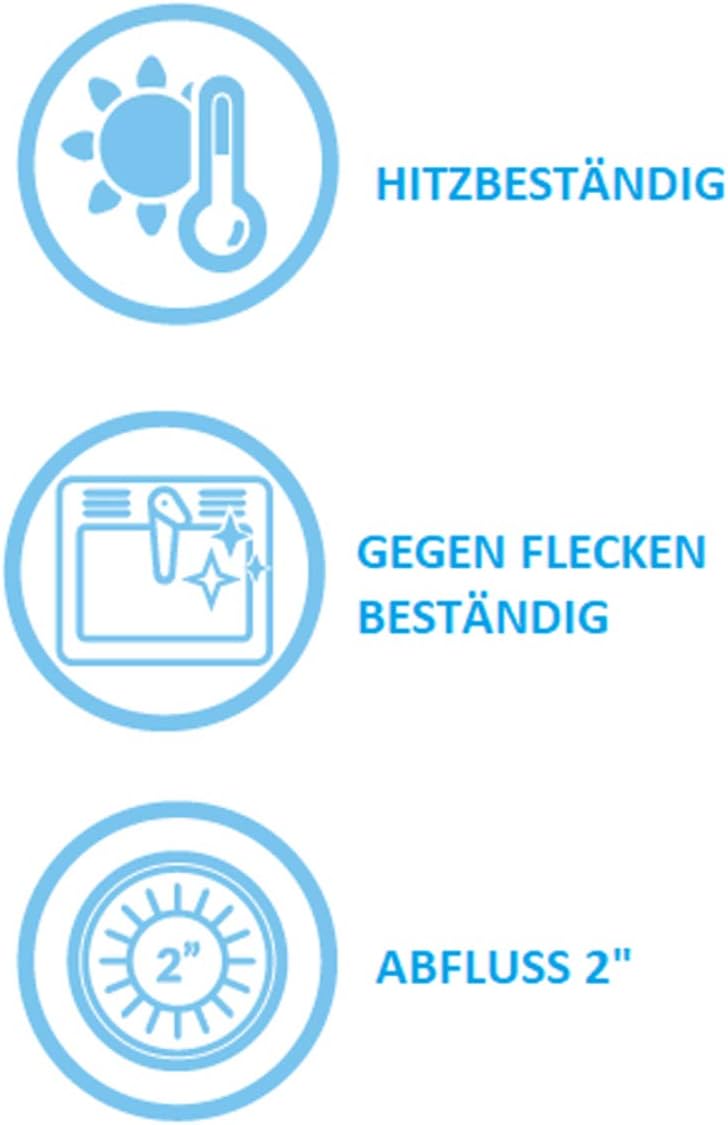 • ✅ Rostfreier Edelstahl 18/10 Satinstruktur (kratzunempfindlicher). Es ist ein zeitloses. elegantes und sehr langlebiges Material, welches auch von den Profis gerne verwendet wird. Eine passende Ablaufgarnitur gehört mit zum Lieferumfang.