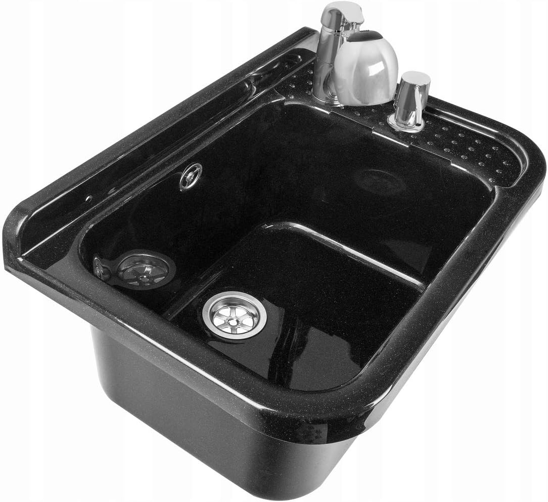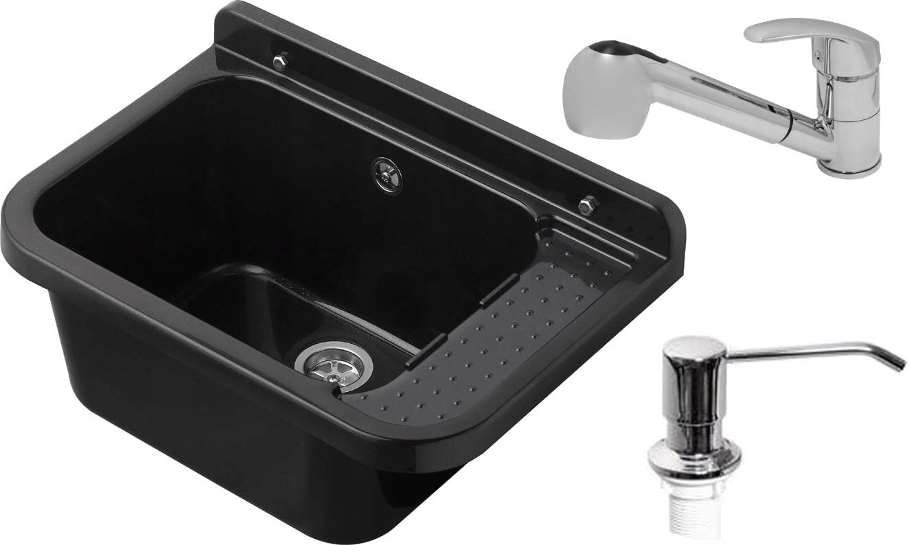 VBChome Ausgussbecken mit Armatur 50 x 34 x 21 cm Schwarz Ausziehbarer Armatur und Seifenspender Spü