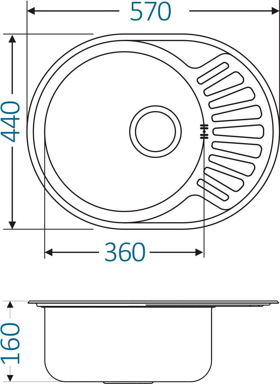 - Aussen-Abmessungen: 57 x 44 cm / Beckentiefen 16cm / Mindestbreite des Unterschranks: 45 cm