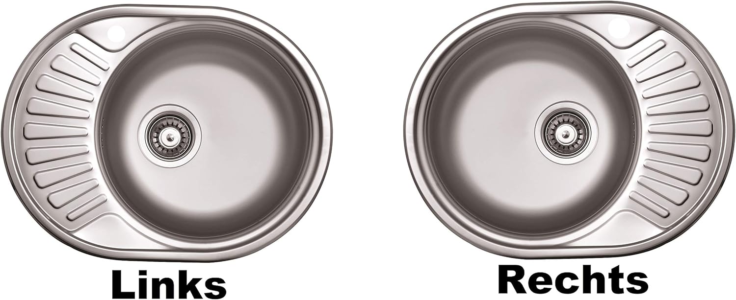 - Varianten: Waschbecken mit Loch für Spültischmischer. Die Spüle kann links oder rechts sein. Drainer links oder rechts.