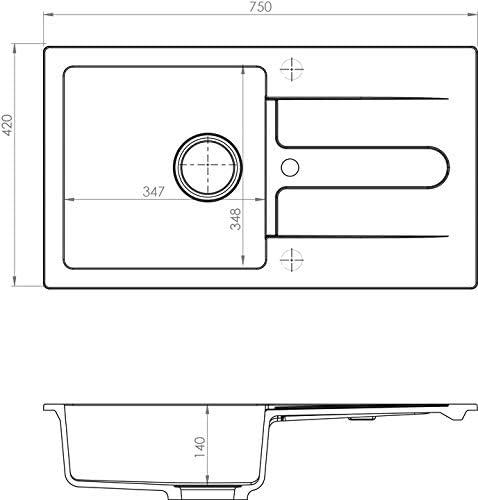 • Mit praktischer Abtropffläche zum Abstellen von Geschirr. Mit Anschluss für eine Waschmaschine oder Geschirrspüler.Die Granit-Küchenspüle ist für den flächenbündigen Einbau konzipiert. Das Waschbecken ist reversibel (links oder rechts) einbaubar.