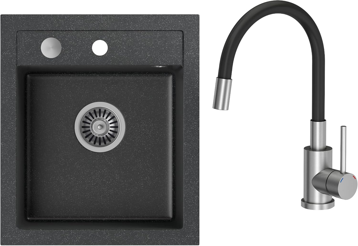 - Moderne massive Granitspüle aus 80% Granitzuschlagstoff 20% Harz. Extrem hartes, kratzfestes und durchgefärbtes Material - Oberfläche lässt sich leicht durch eine glatte, versiegelte Oberfläche reinigen.