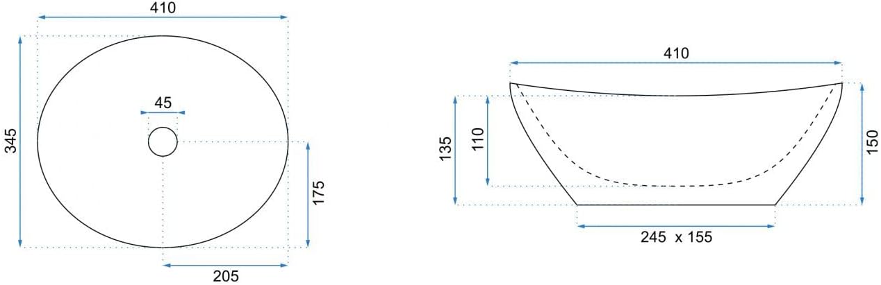 VBChome Waschbecken Kleine 41 x 35 x 15 cm Mini Keramik Weiss Oval Waschtisch Handwaschbecken Aufsat