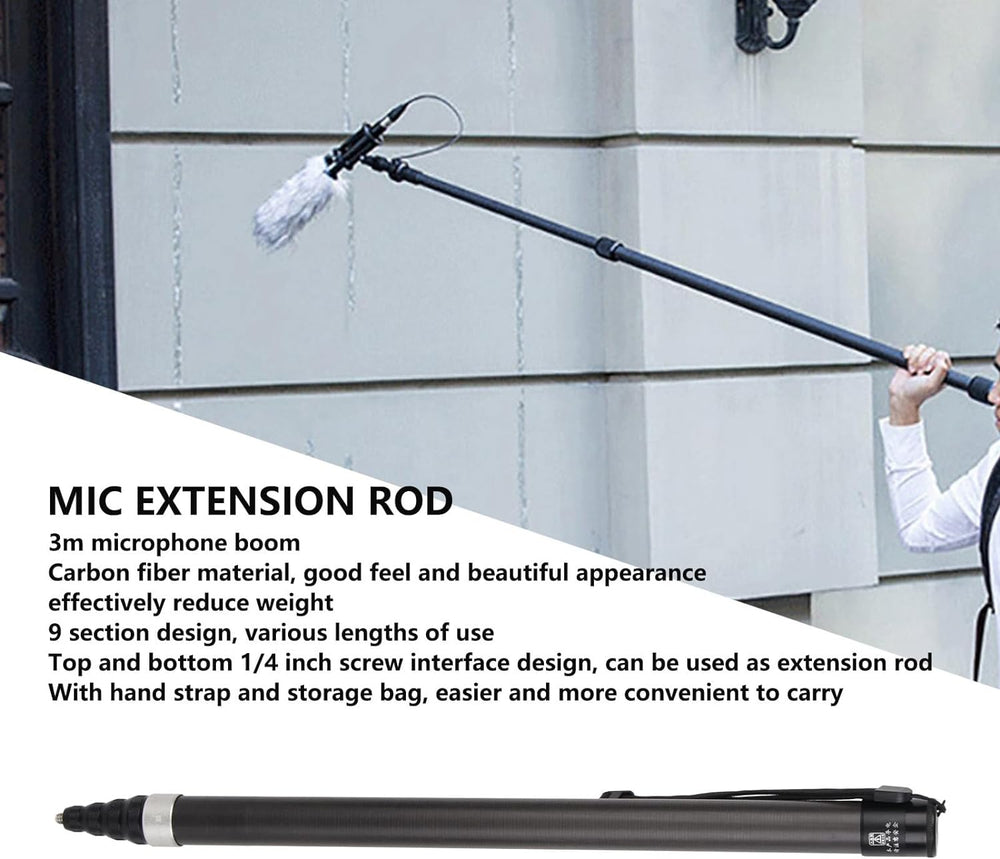 - 9-TEILIGES DESIGN: 3-Meter-Mikrofon-Verlängerungsstange, 9-teilig und die Länge kann frei eingestellt werden, die Aufbewahrungslänge beträgt ca. 45,5 cm.
