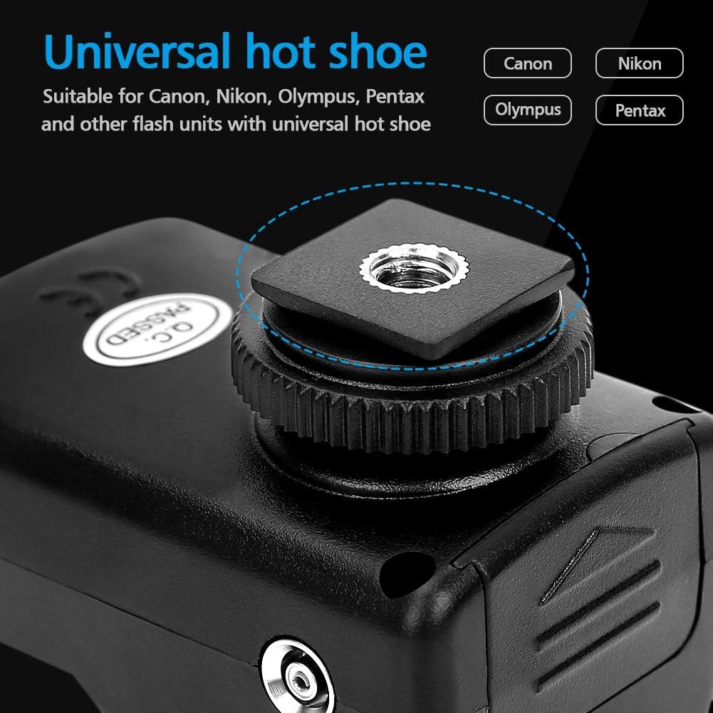 - Universal-Blitzschuh. Geeignet für Canon, Nikon, Olympus, Pentax und andere Blitzgeräte mit Universal-Blitzschuh.