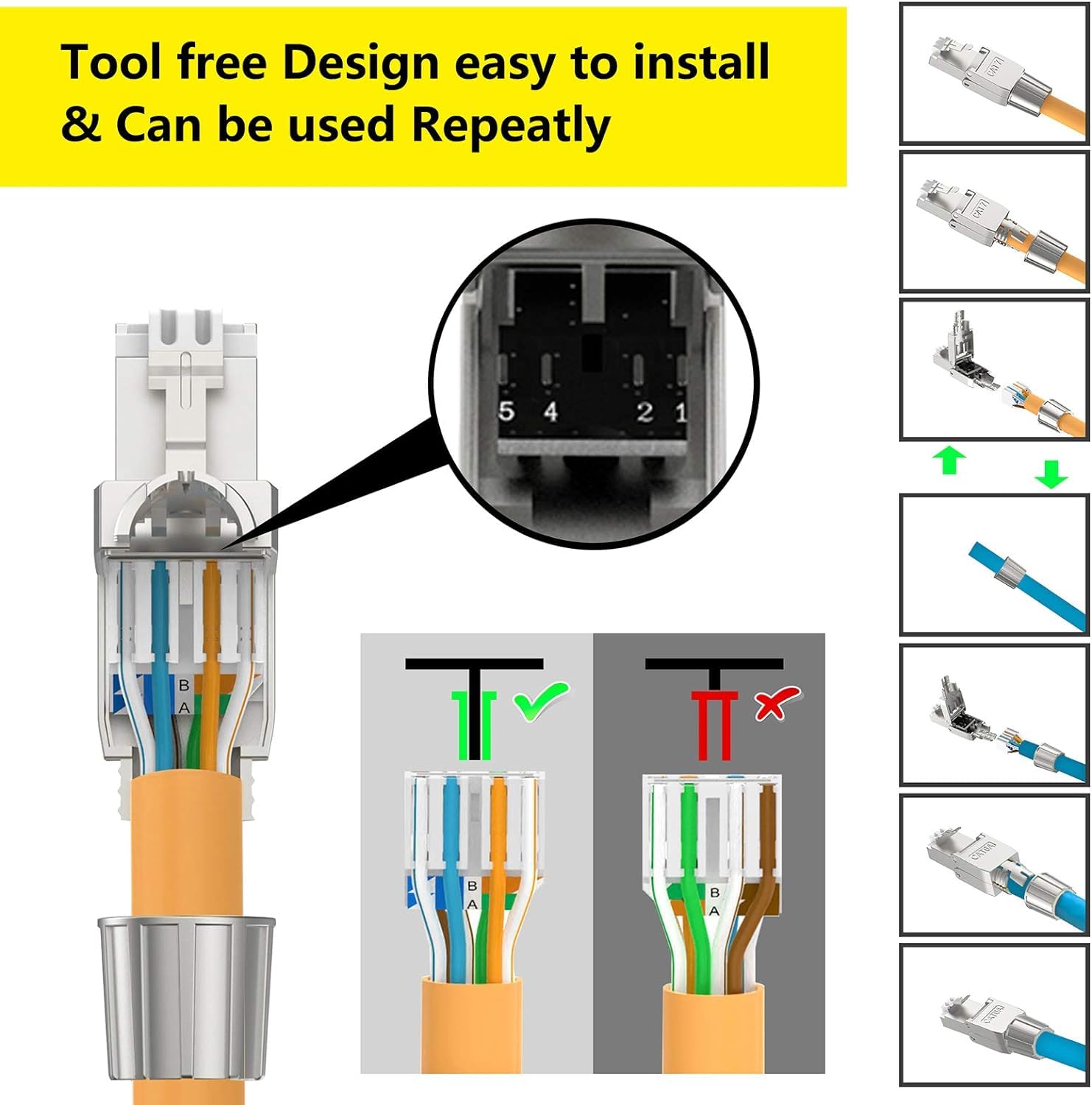 - Paket und Kundendienst: 12 Stück Lan Kable Stecker Cat7 Werkzeuglos, 18 Monate Qualitätsgarantie. Unsere Stecker eignen sich hervorragend für die professionelle Verkabelung von Arbeitsplätzen und Servern in Bürogebäuden, Rechenzentren und