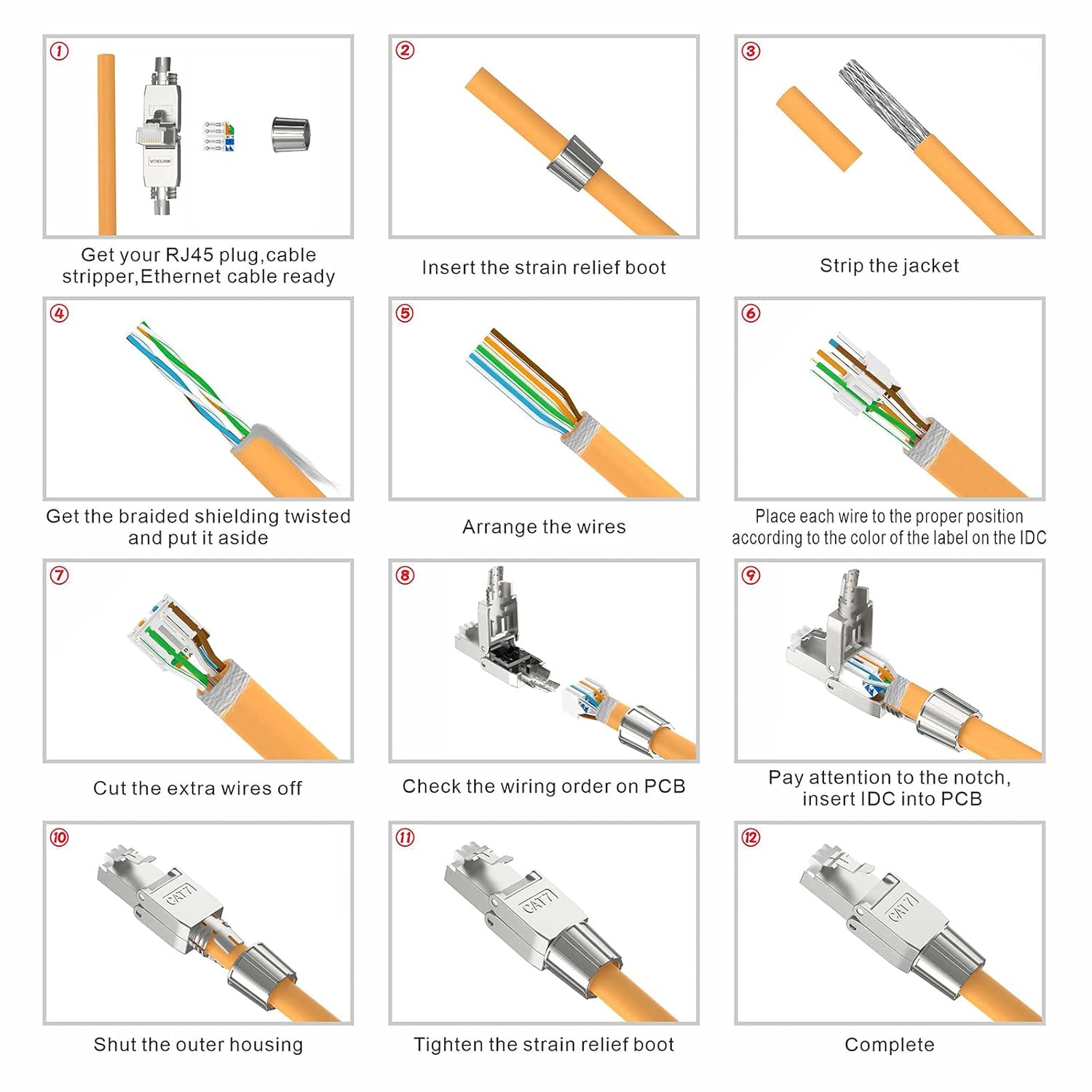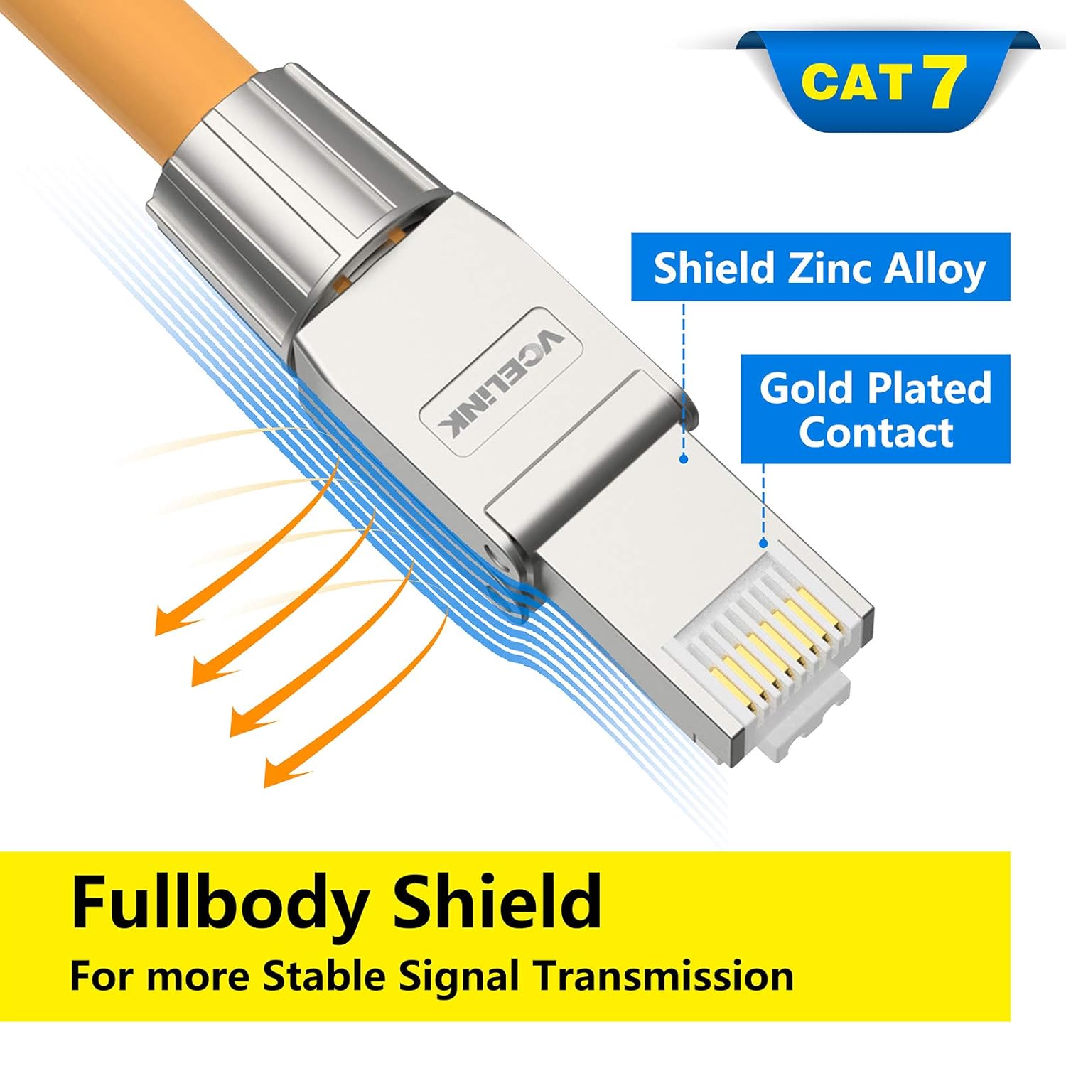 VCELINK RJ45 Stecker Werkzeuglos für Verlegekabel Cat7 Cat6A Netzwerkstecker Werkzeuglos Feldkonfekt