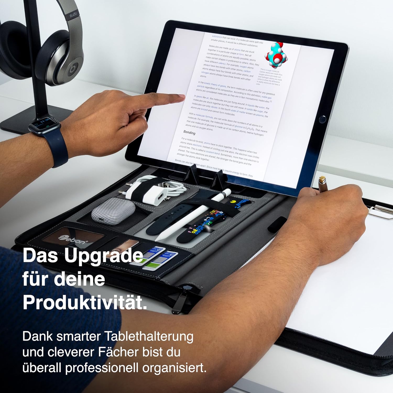 - FUNKTIONELLES ARBEITEN – Die integrierte Handy- und Tablethalterung ermöglicht dir eine angenehme Ausrichtung und Positionierung von Display und Kamera. Somit kannst du ganz entspannt Videotelefonie halten oder deine neusten Dokumente ansehen,