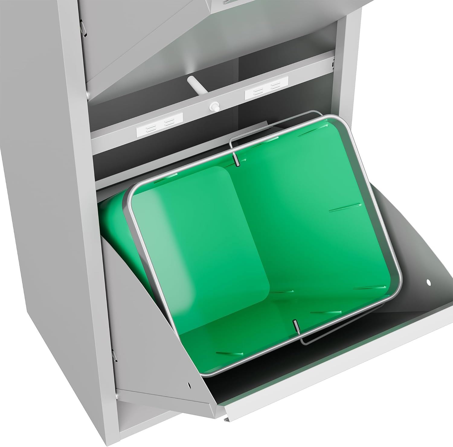 - GROSSE KAPAZITÄT Mit grosser Kapazität eignet sich dieser Edelstahlbehälter für den Einsatz in verschiedenen Umgebungen, einschliesslich Wohngebäuden und Gewerbeflächen. Der geräumige Innenraum ermöglicht es, eine beträchtliche Menge an Abfall
