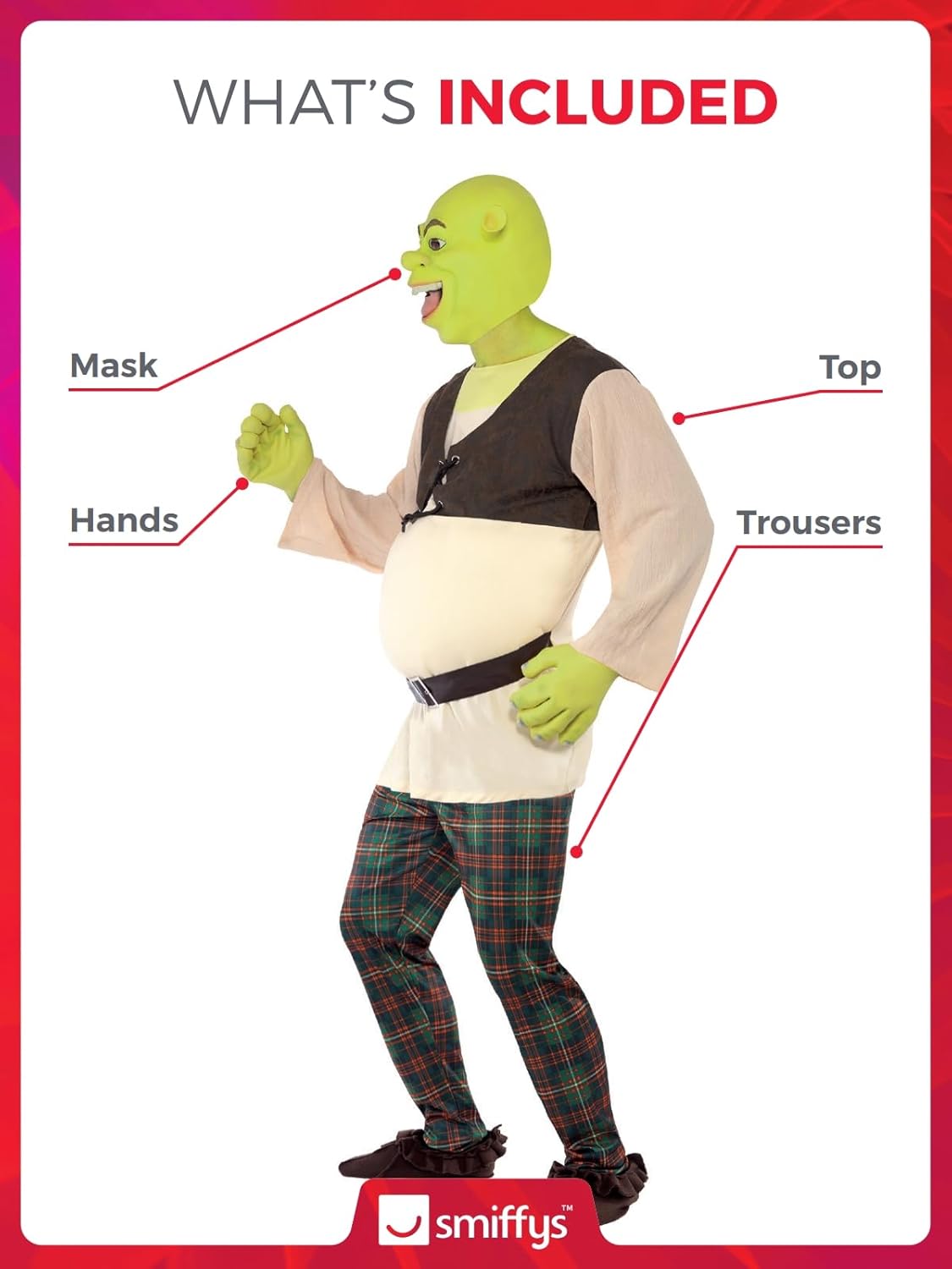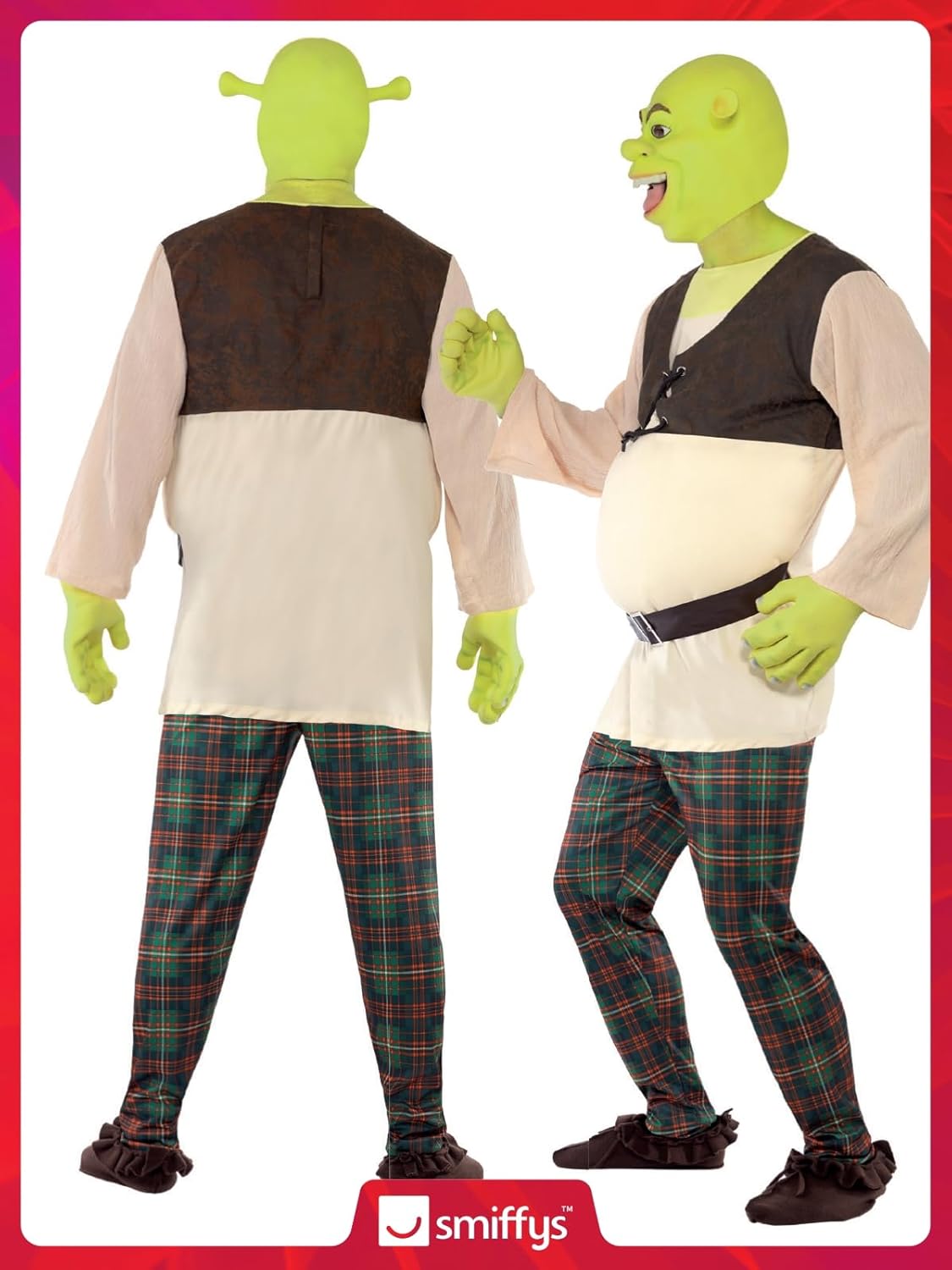 PRODUKTBESCHREIBUNGEN Original Shrek Kostüm als Lizenzkostüm Das Original Lizenzkostüm für Shrek ist ein wirklich naturgetreues Kostüm des Ogers Schreck aus dem gleichnamigen Film. Das Kostüm besteht aus dem Oberteil, der Hose sowie der Latex Maske und den Händen, die ebenfalls aus Latex sind. Der Gürtel ist fest in das Kostüm integriert und hält die Polsterung zusammen, die dem liebenswürdigen Shreck seine Figur gibt. Material: 100% Polyester Hände, Maske: 100% Latex