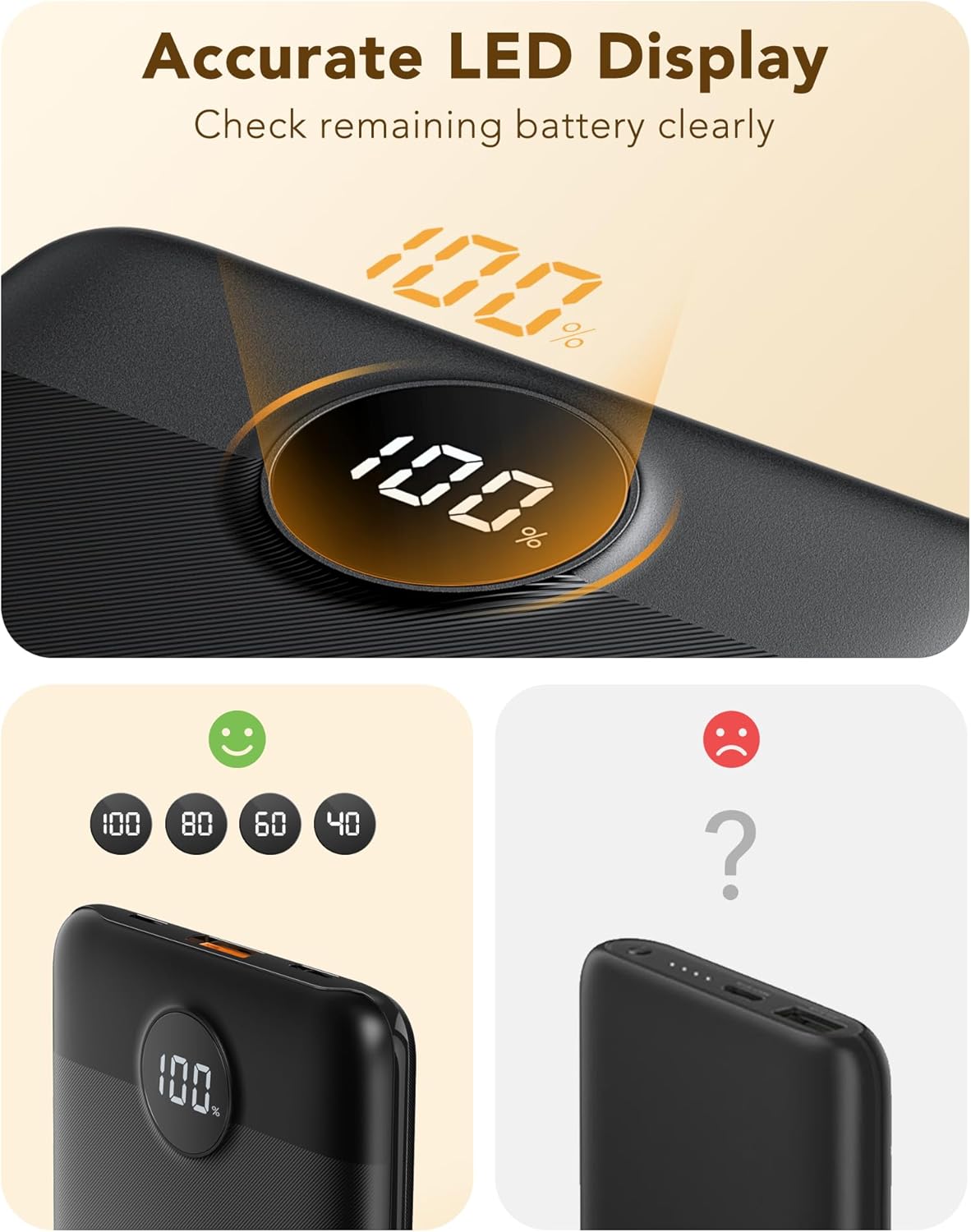 - Accurated LED Display Der integrierte digitale LED-Display hat eine präzise Anzeige von 0%-100%, die die Echtzeit-Füllstandänderung der Batterie direkt widerspiegeln kann, um den Akku rechtzeitig aufzuladen.