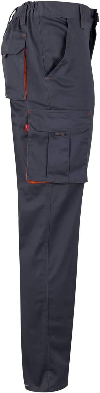PRODUKTBESCHREIBUNGEN Zweifarbige Stretch-Hose, widerstandsfähig, langlebig und elastisch. Dank ihrer Zusammensetzung und Dichte ist diese Hose sehr strapazierfähig. Doppelt genähte Sicherheitsnähte machen sie haltbar. Sie hat ausserdem sechs Taschen, in denen Sie Ihre Werkzeuge und Utensilien problemlos verstauen können.