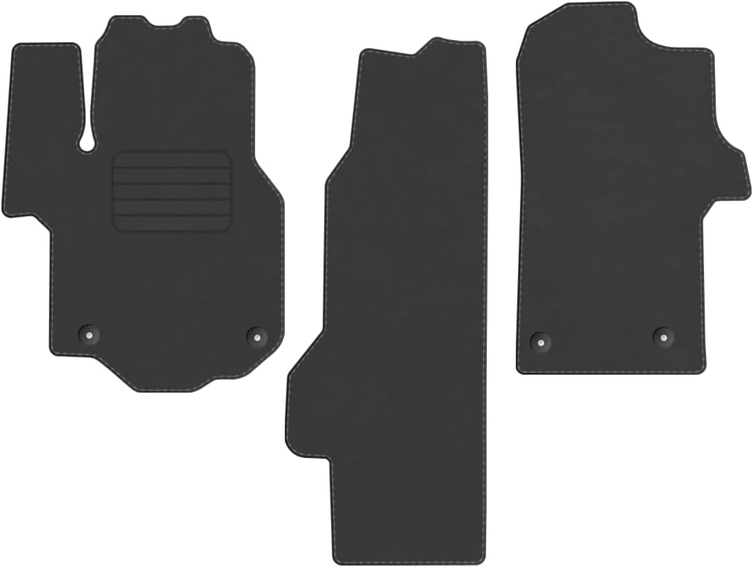 - ► Veloursfussmatten für VW Grand California 600 ab Bj. 2019 in anthrazit. Mit rundem Befestigungsknöpfen. Lieferungsumfang - 3 Veloursmatten: 3 vordere Matten, Befestigungen (wie auf dem Billd). Fahrermatte mit Absatzschoner - Verstärkung im