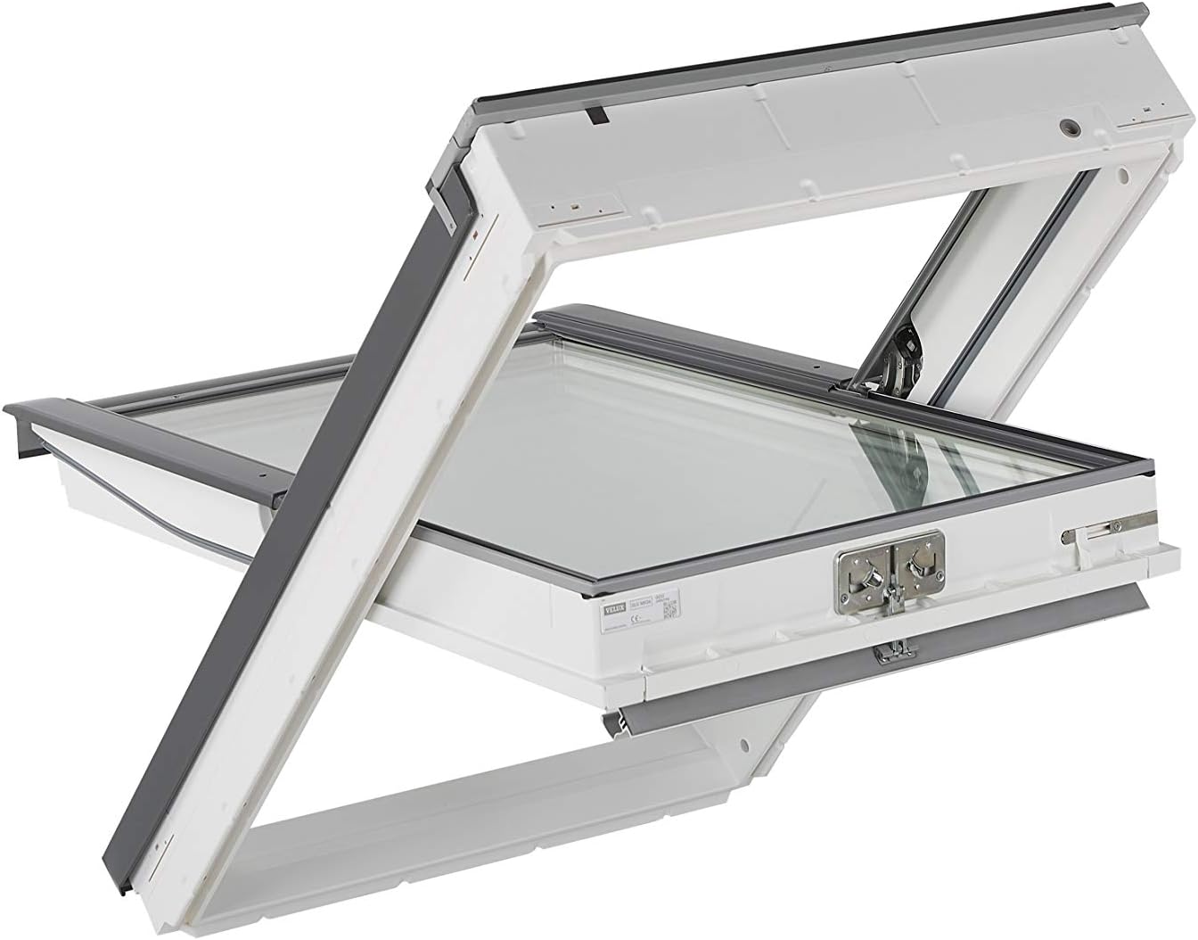 - Innenfarbe Kunststoff weiss - Aussenfarbe Aluminium Grau (RAL 7043) - Einbau in Dachneigung 15 - 90°