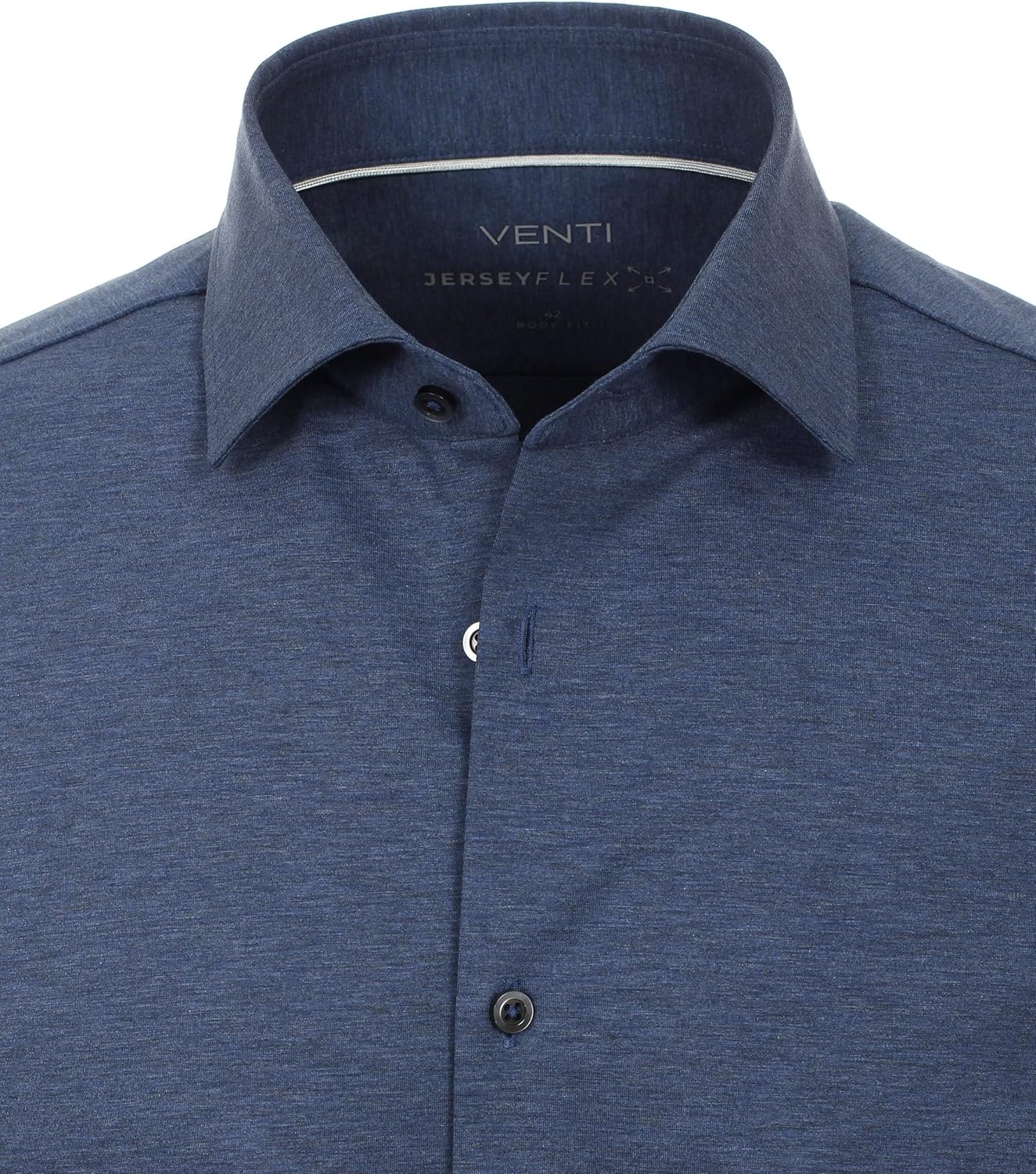 • VENTI Body Fit Hemd Langarm Jersey Jerseyhemd Langarm hemd Herrenhemd Baumwollhemd Stretchhemd tailliert geschnittenes Hemd Hemd im schmalen Schnitt in Stretch dunkelkblau