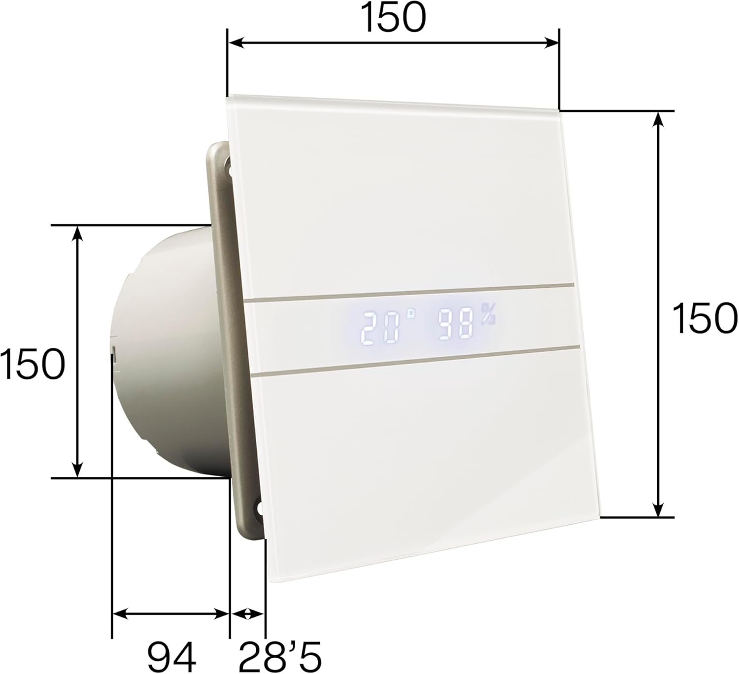 - ERGONOMISCHES DESIGN: Es handelt sich um einen Feuchtigkeitsabzug mit modernem Design, der die Turbine mit einer weissen Glasfront verdeckt. Ein nützliches Gerät mit elektronischem Timer für 3 und 15 Minuten und einstellbarem Feuchtigkeitsmesser.