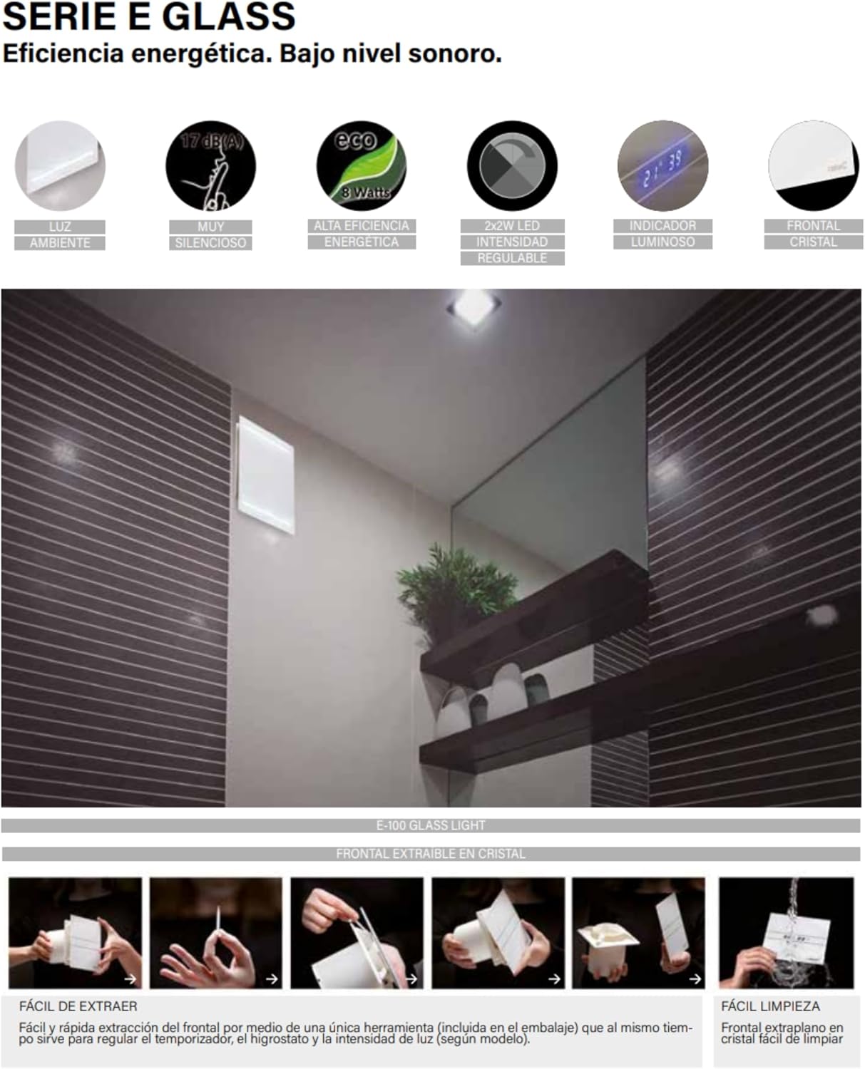 - ABLUFTVENTILATOR BAD: Wählen Sie die Belüftungsfunktion, um die Luft in Ihrem Badezimmer zu erneuern. Er reguliert seine Umdrehungen, um geräuschlos zu saugen, unangenehme Gerüche zu vermeiden und überflüssige Feuchtigkeit beim Duschen zu