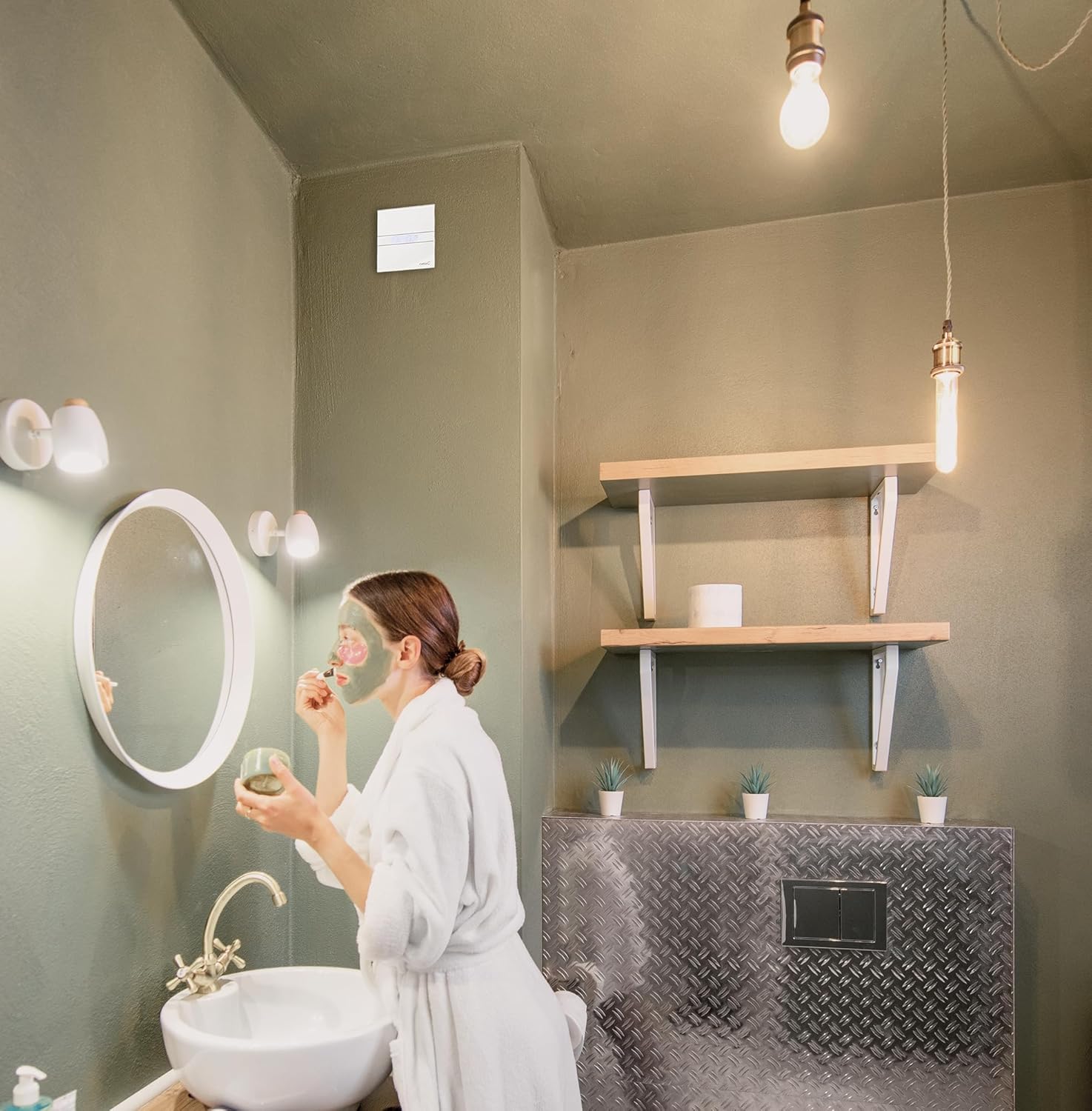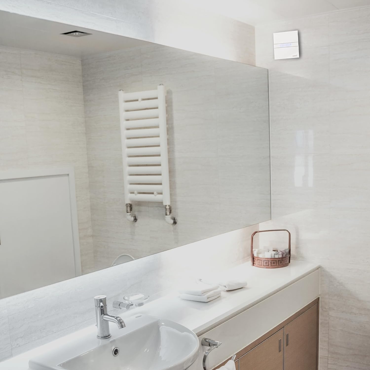 - ABLUFTVENTILATOR GERÄUSCHARM: Der Perimeter Ventilator ist der effizienteste und leiseste Badabzug. Mit 2 Geschwindigkeiten bewegt er einen Luftstrom von bis zu 115 m3/h, bei einem Schallpegel von nur 31 dB und einem Verbrauch von 8 W.