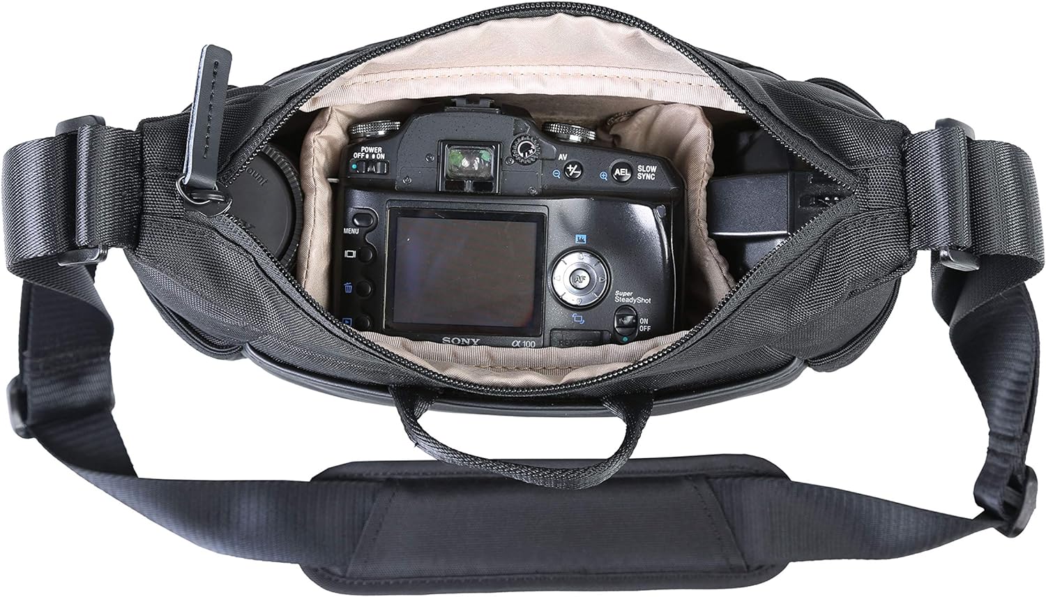 • Die VEO GO 21M Black ist eine stilvolle, leichtgewichtige schwarze Umhängetasche für eine spiegellose CSC/Hybrid-Kamera mit Kit-Objektiv und zwei zusätzlichen Objektiven mit Zubehör.