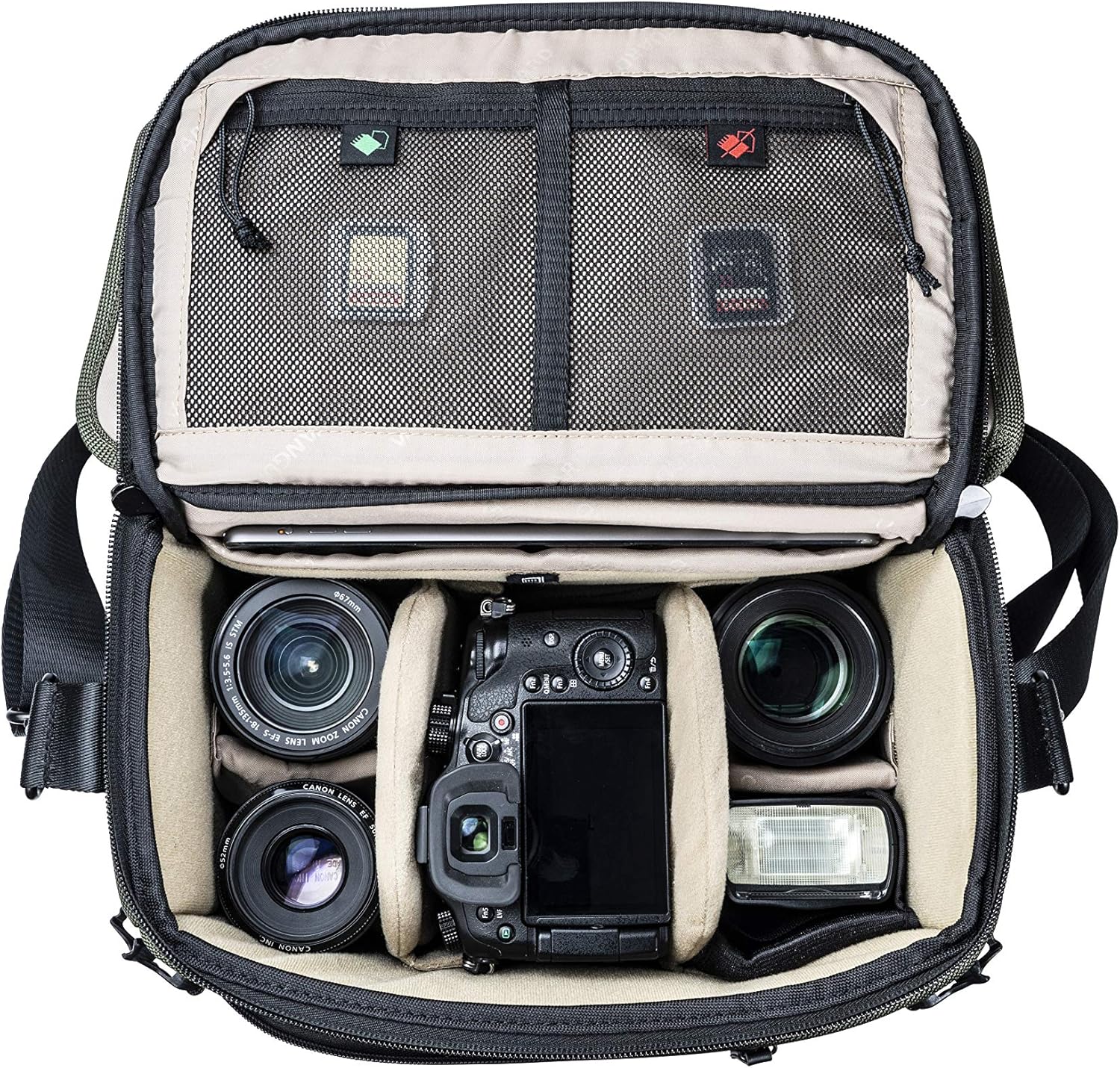 • TRANSPORT: Der flexible Stauraum bietet vielseitige Transportmöglichkeiten, z.B. DSLR/ Spiegellose Kamera, 2-4 Objektive, Blitz, 9,7“ Tablet und verschiedenes Zubehör. Durch eine individuell montierbare Stativhalterung kann sogar ein Stativ mit der