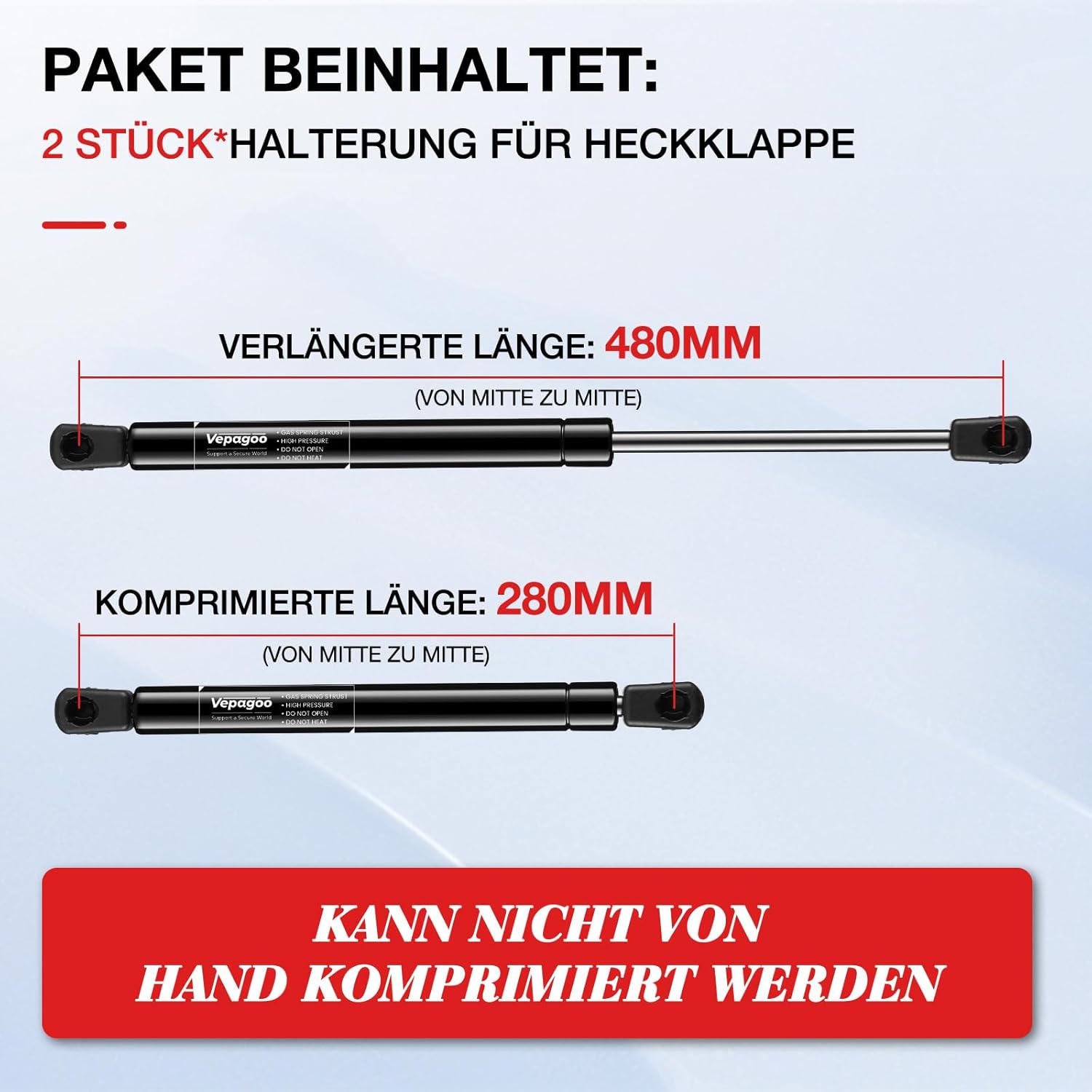 • 【12+1 Monate Garantie & Professioneller Support】Geniessen Sie 12+1 Monate Garantie und kompetente Unterstützung für Ihre Kofferraumdämpfer von Vepagoo