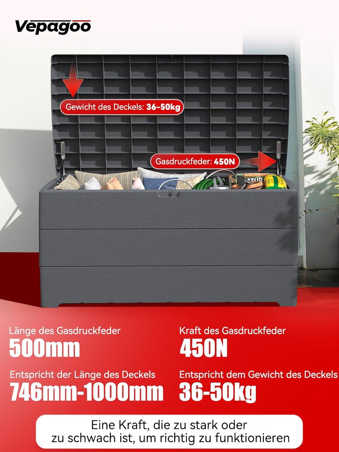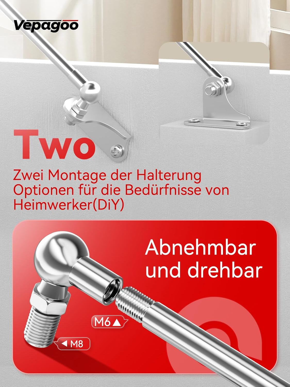 • [PREMIUM 500MM GASFEDERN]: Die Gasfedern von Vepagoo können normalerweise auf der Terrasse, am Fenster eines Aufsatzdachs, an Bodenluken, Booten, Mülleimerdeckeln, Werkzeugkastendeckeln, Zelten und anderen Aussenbereichen funktionieren. Als bester und