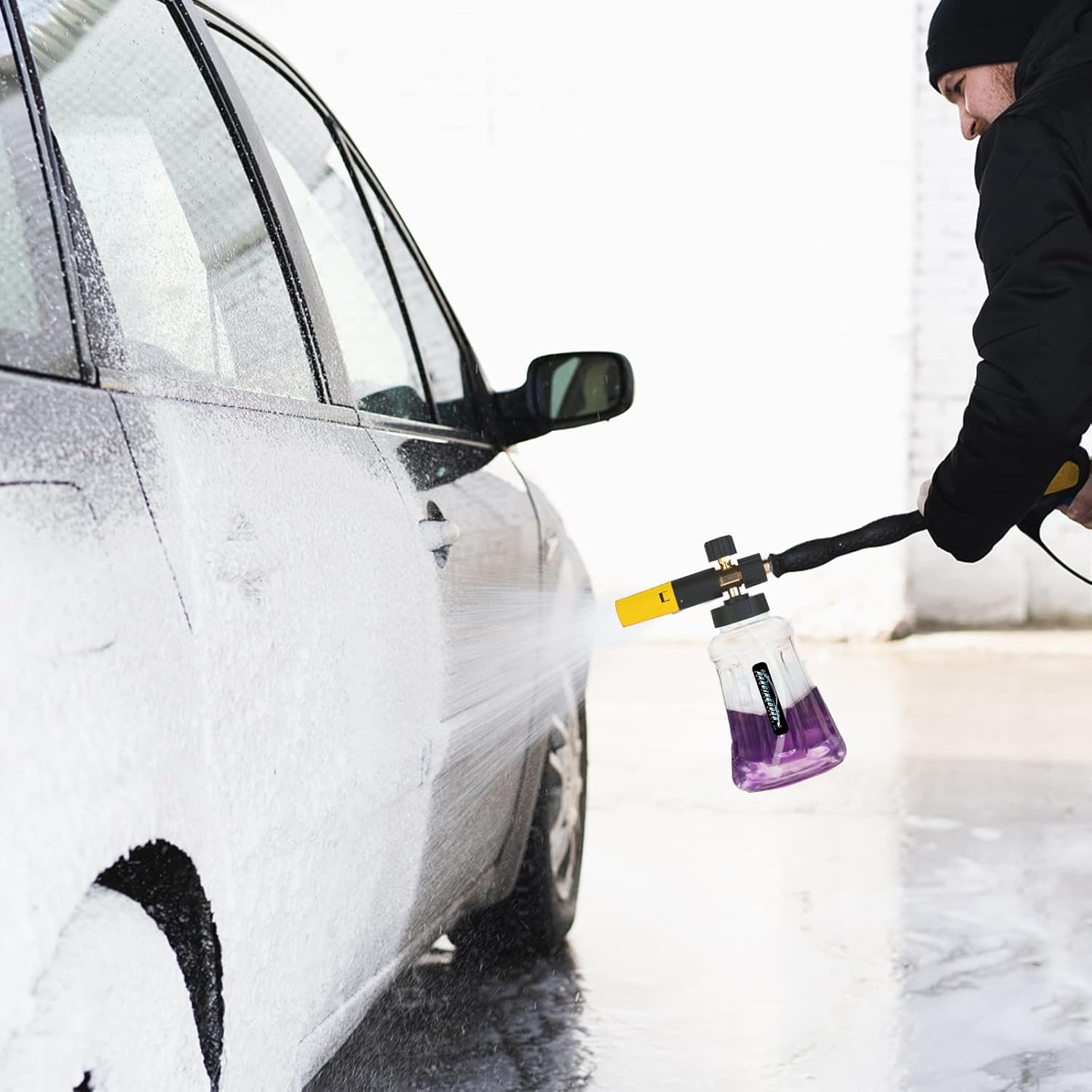 - 【Dicker Schaum】 Sie müssen die Schneeschaumlanze mit Autowaschmittel und warmem Wasser im Verhältnis 1: 4 füllen. (20% Shampoo + 80% Wasser werden empfohlen), wodurch eine dicke Schaumschicht auf dem Auto entstehen kann. Es hilft, Ihr Auto