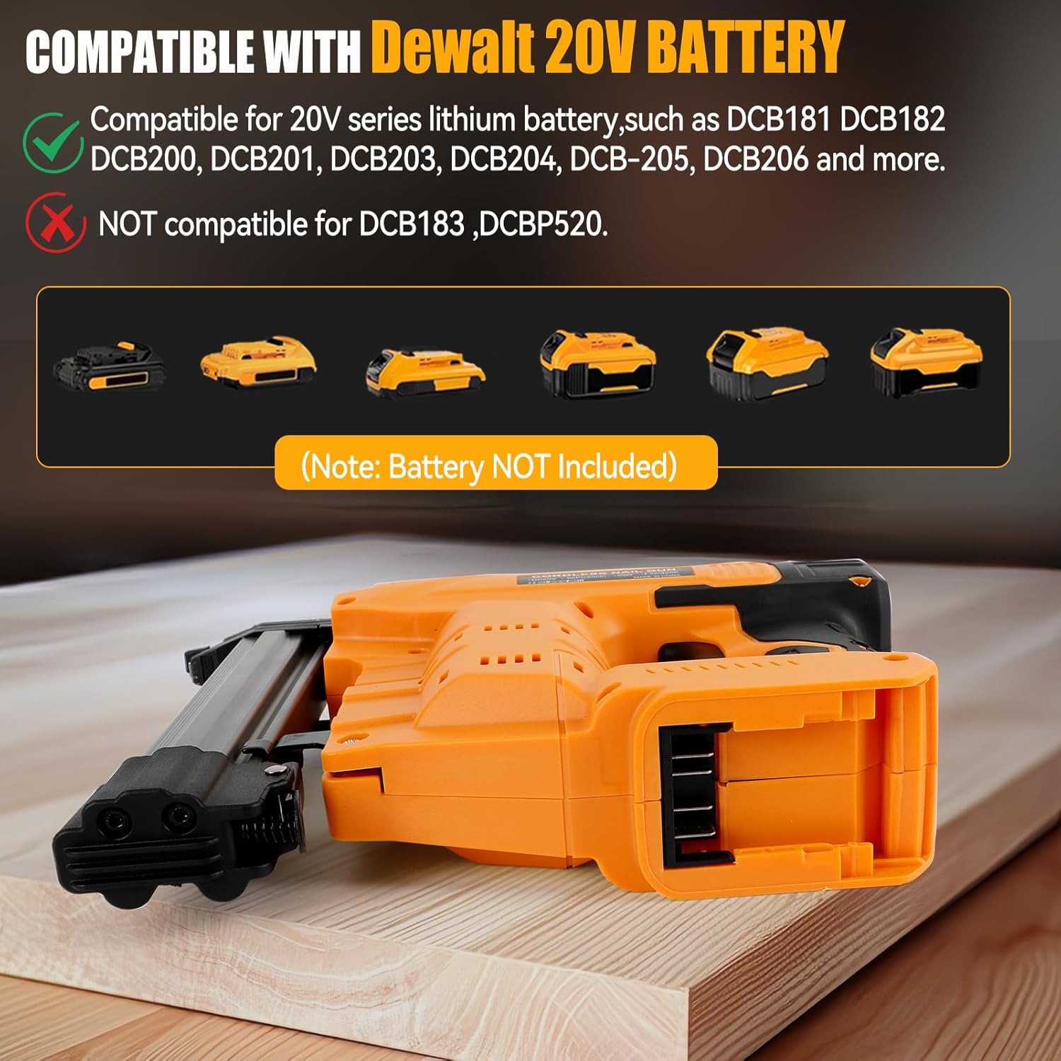 - Akku-betriebener 18-GA-Nagler: Kompatibel mit Dewalt 20V Max-Akkus wie DCB200, DCB201, DCB203, DCB204, DCB205, DCB206, DCB230, DCB240, DCB246 usw. (Nur Werkzeug. Akku nicht im Lieferumfang enthalten. Für eine optimale Leistung empfehlen wir die