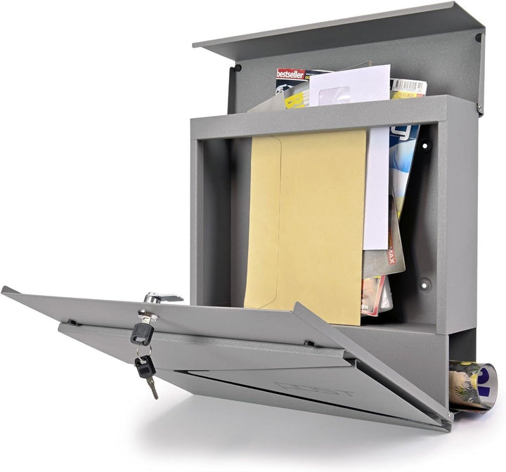 - Briefkasten mit Zeitungsfach aus pulverbeschichtet verzinkter Stahl hergestellt.