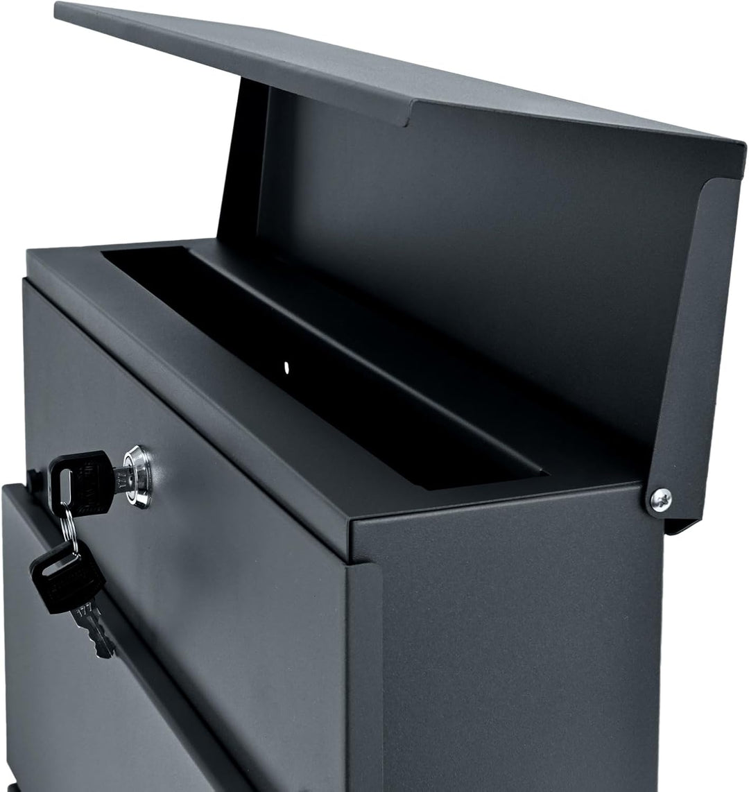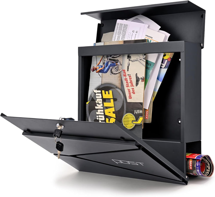 - Briefkasten mit Zeitungsfach aus pulverbeschichtet verzinkter Stahl hergestellt.