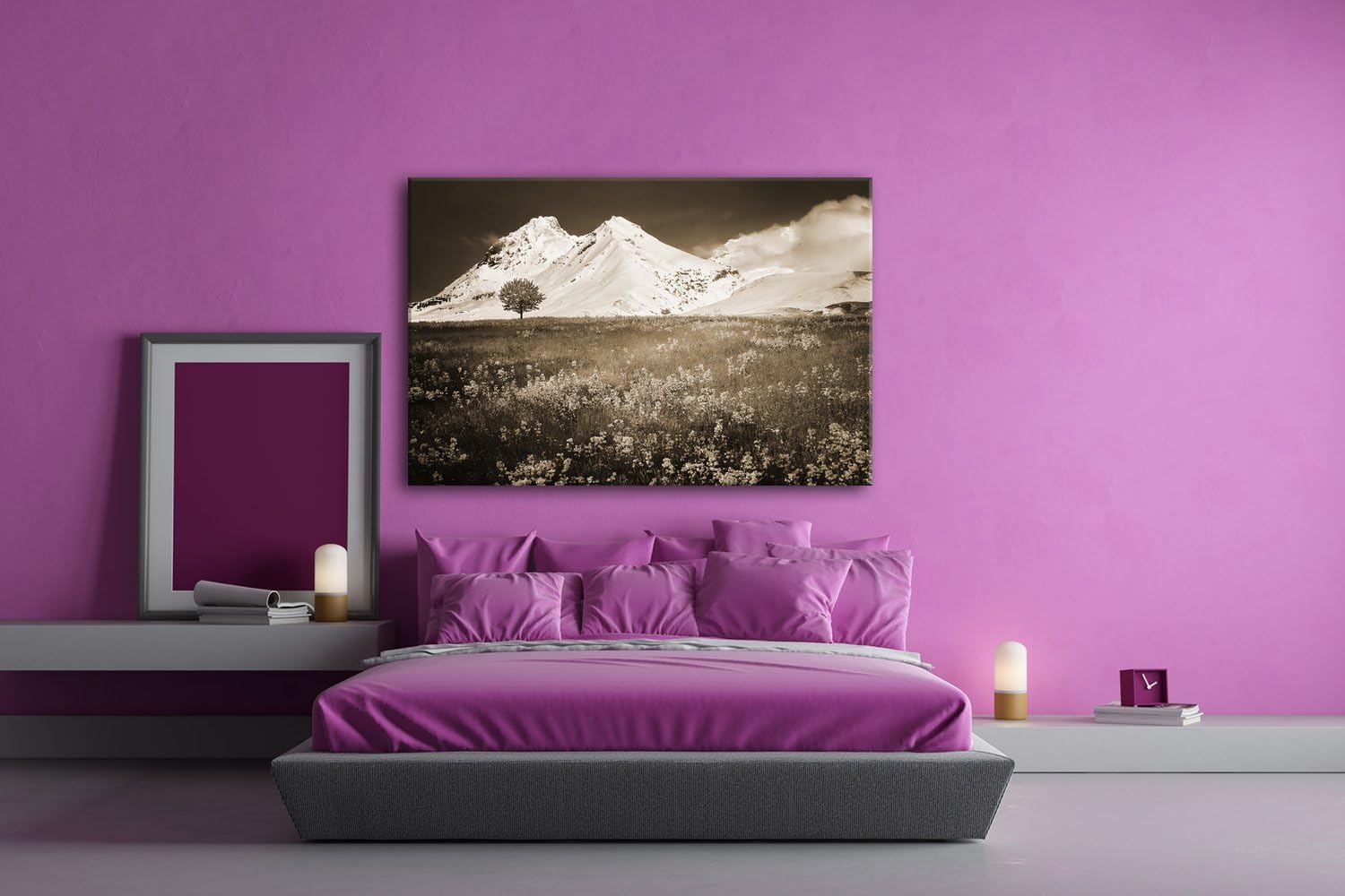 verführerisches Wiese vor denn eisigen Alpen Format: 80x60 Effekt: Sepia als Leinwandbild, Motiv fer