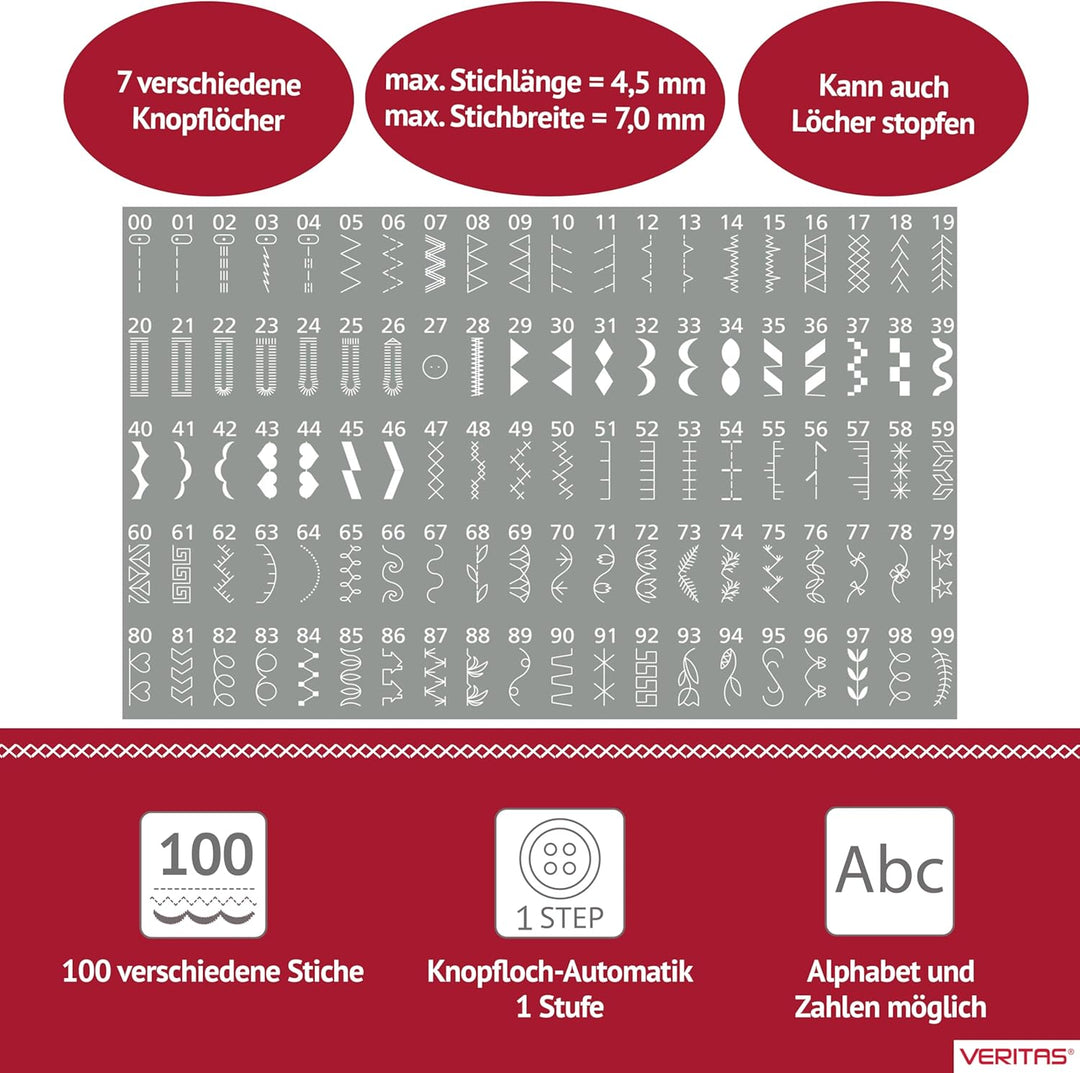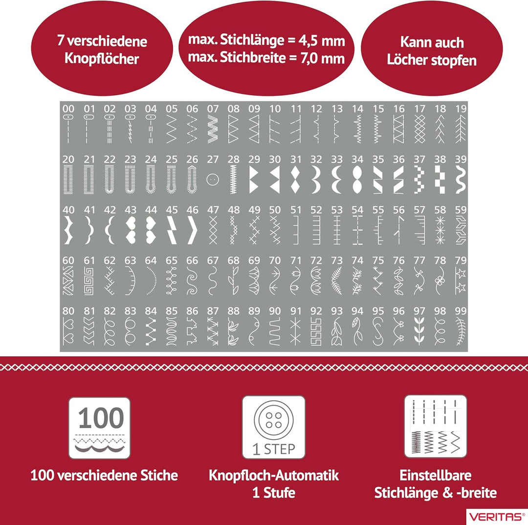 - VERITAS: VERITAS Nähmaschinen stehen seit über 125 Jahren für höchste Qualität und Ansprüche. Sie überzeugen mit Innovation und Kreativität. Geeignet für Anfänger, Fortgeschrittene und Profis