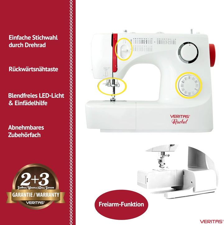 - Integrierte Einfädelhilfe | Integrierter Fadenabschneider | Automatisches, vertikales Spulensystem | Integriertes abnehmbares Zubehörfach | Schlanker Freiarm