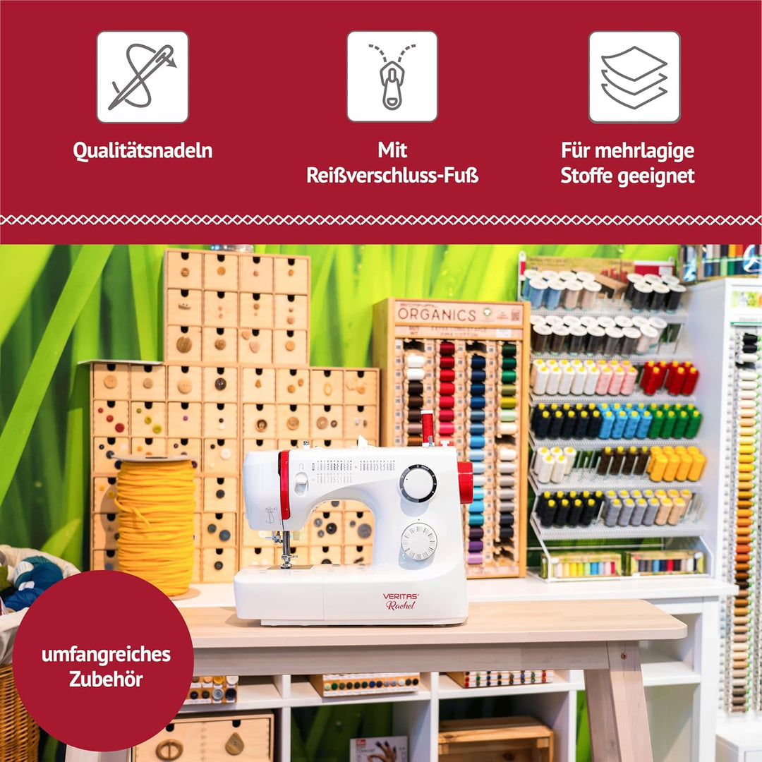 - Stichlänge von 1 bis 5 mm einstellbar | Stichbreite von 0 bis 5 mm einstellbar | Nähen von Reissverschlüssen möglich