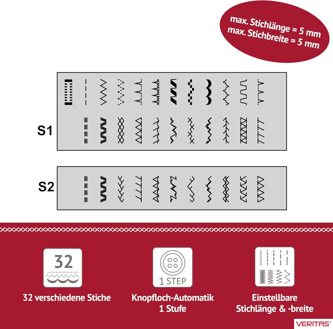 - PRODUKTINFORMATION: 32 Stichprogramme mit Zier-, und Overlockstichen | 1-Stufen-Knopflochautomatik | Hoher Drehmoment für feste Stoffe