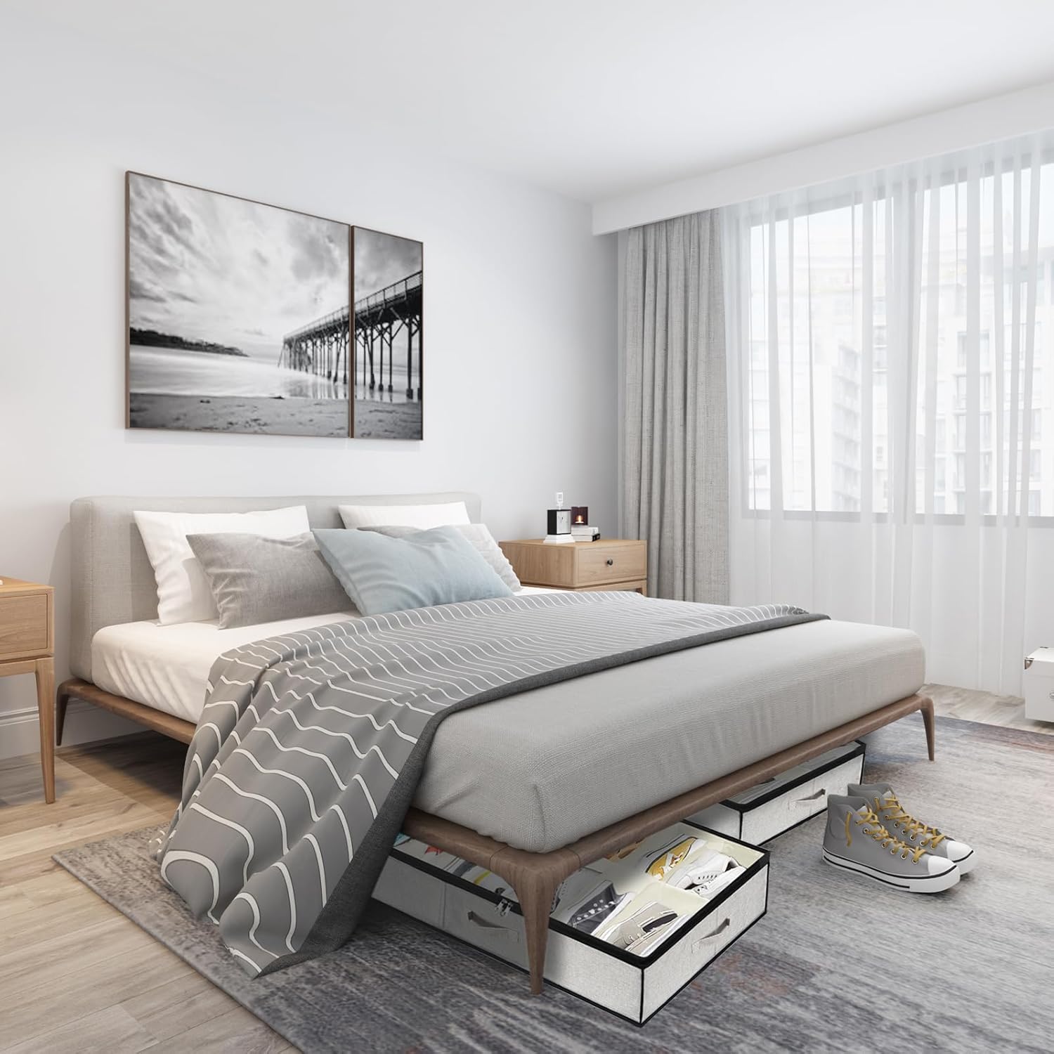 - 【Perfekt zum Unterschieben Unter das Bett】:Ein griff an der vorderseite und ein weiterer an der seite, sodass ihn aus jeder richtung leicht herausziehen können.Schuhaufbewahrung mit karton einsatz hilft dabei, die box unter das bett zu schieben.