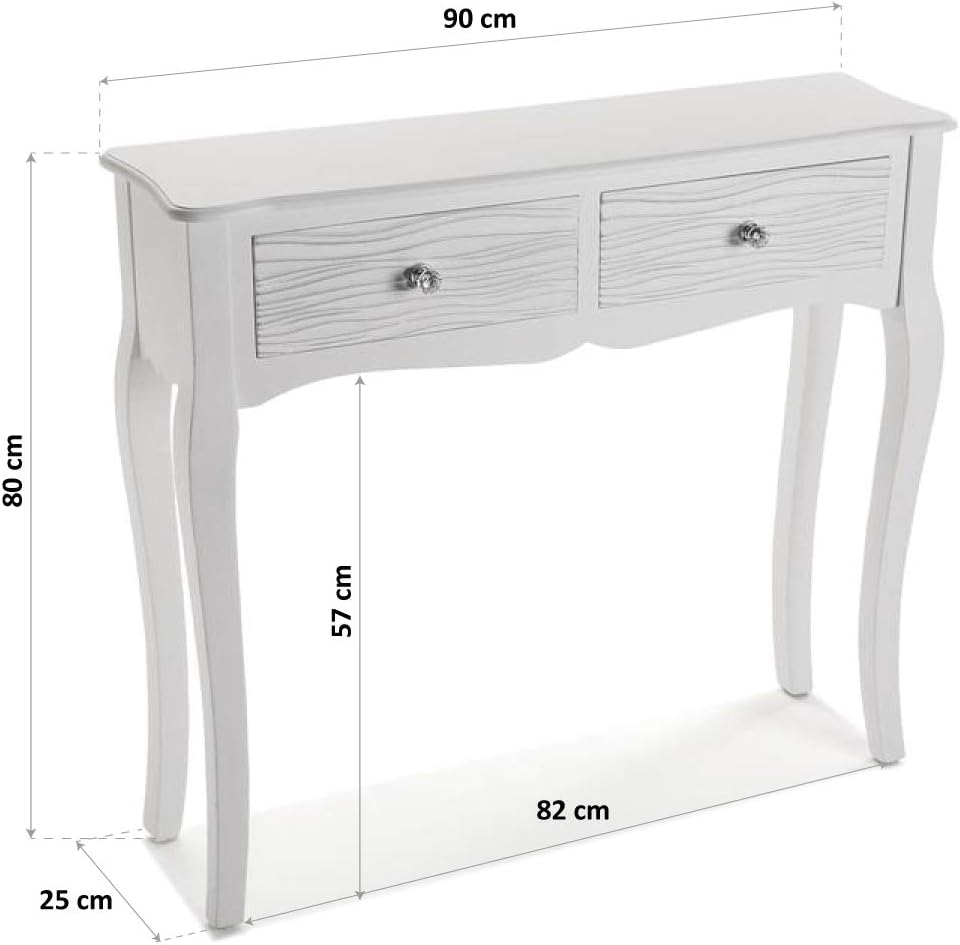 • EIGENSCHAFTEN - Tisch für den Eingangsbereich mit einer perfekten Grösse für den Eingang oder Flur. Die praktische Konsole ist 80 cm hoch, und hat eine Länge (Tiefe) von 25 cm, und eine Breite (von Seite zu Seite) von 90 cm. Das Gewicht beträgt 10